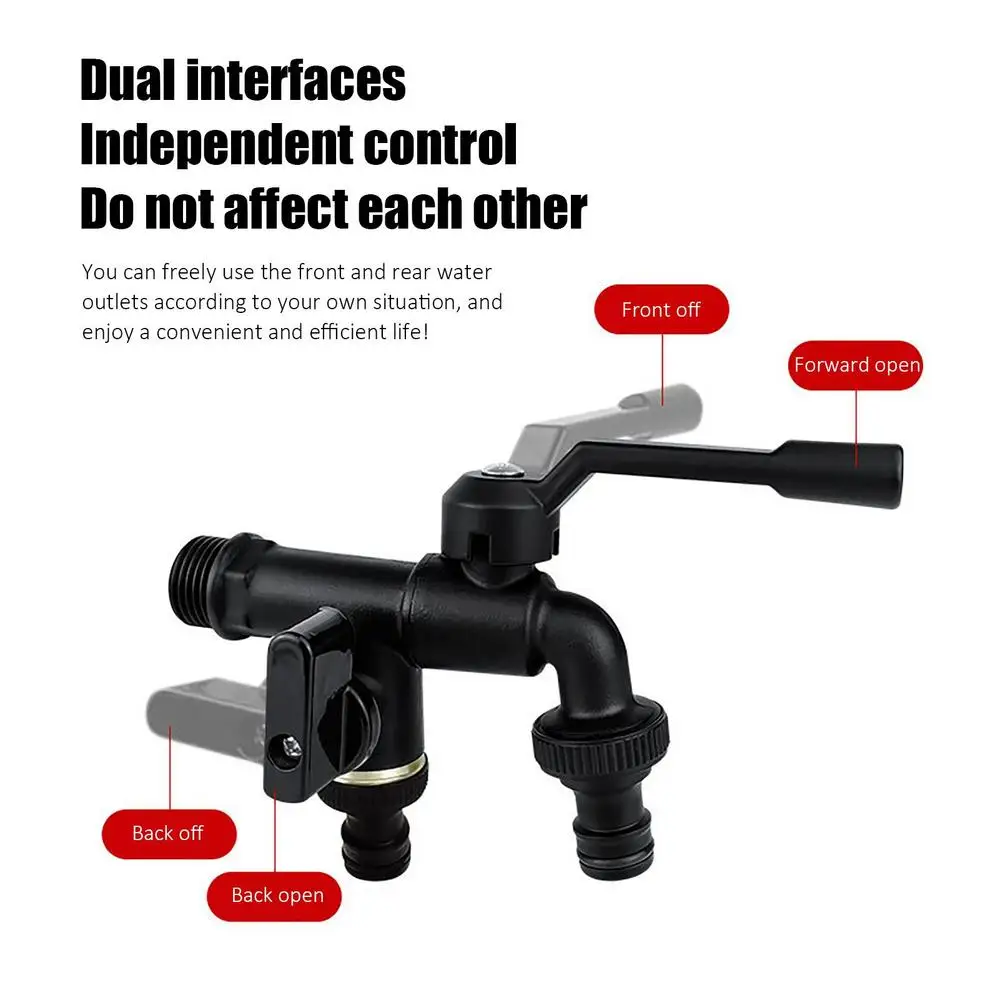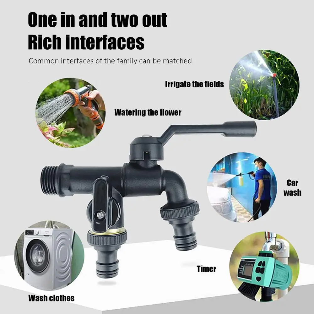 1.Fourniture d’eau flexible : Avec deux prises indépendantes, le robinet vous connecte à la fois une machine à laver et un tuyau simultanément. Vous pouvez changer facilement entre eux et ajuster le débit d’eau selon vos besoins.