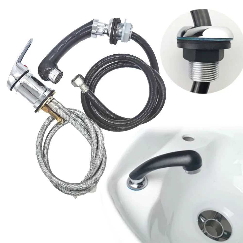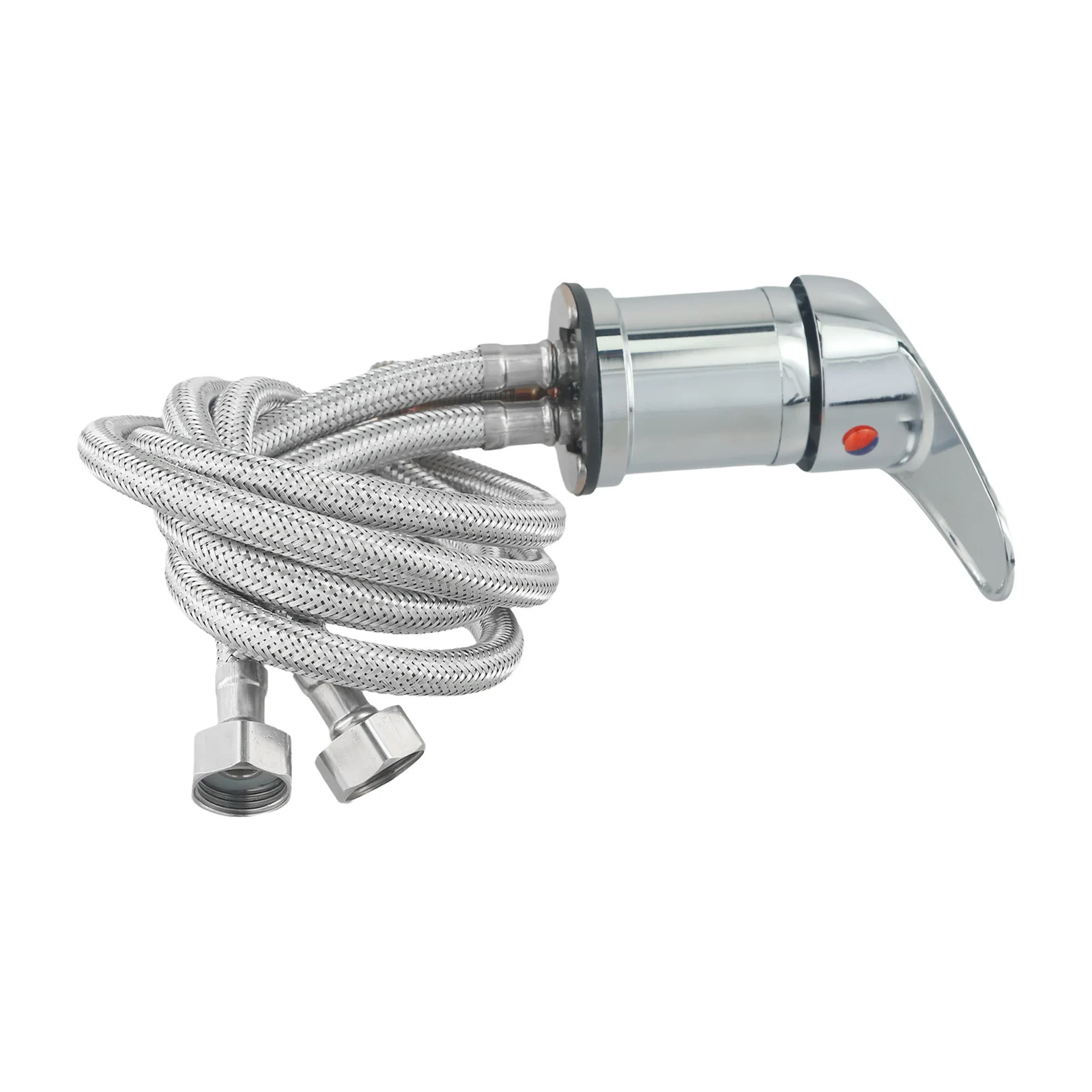 Tuyaux d’eau froide et chaude pour coiffeur, poignée unique chromée, rallonge chromée, portée arc-en-ciel, longueur de tuyau généreuse