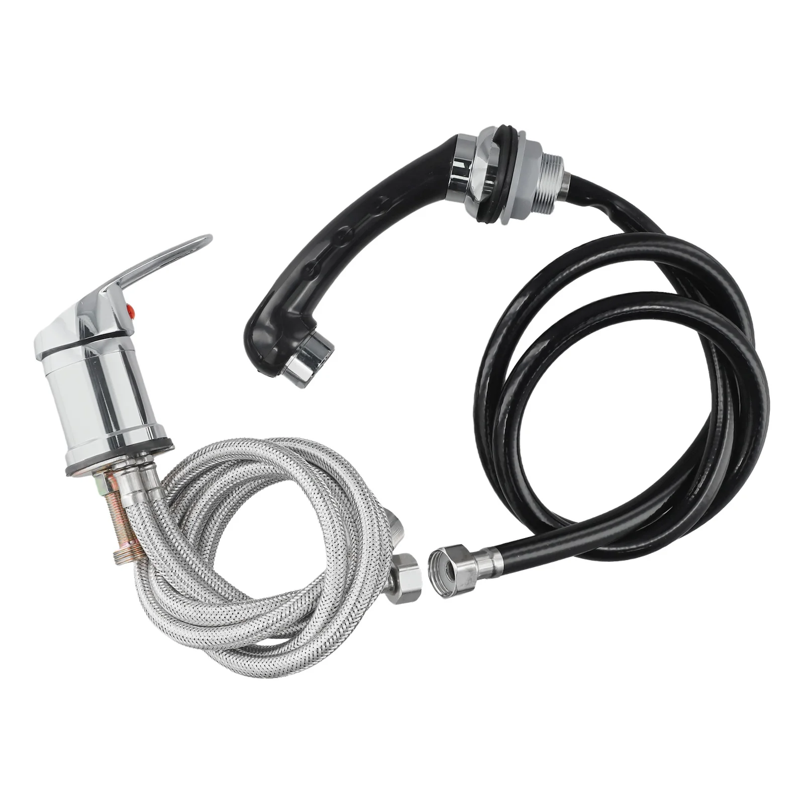 * Raccord complet en chrome à poignée unique avec douchette (mélangeur + douchette à main): Cette douchette à main pour évier mitigeur est livrée dans un design complet de douchette à poignée unique en chrome, ce qui la rend à la fois élégante et élégante.