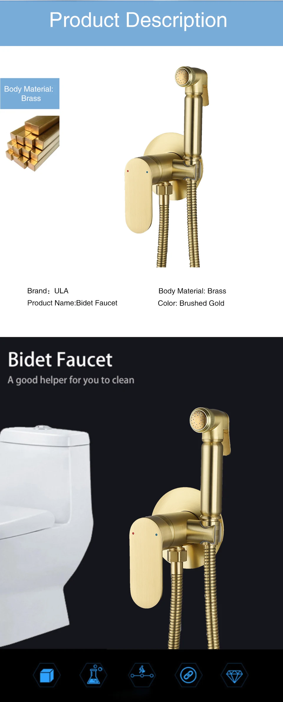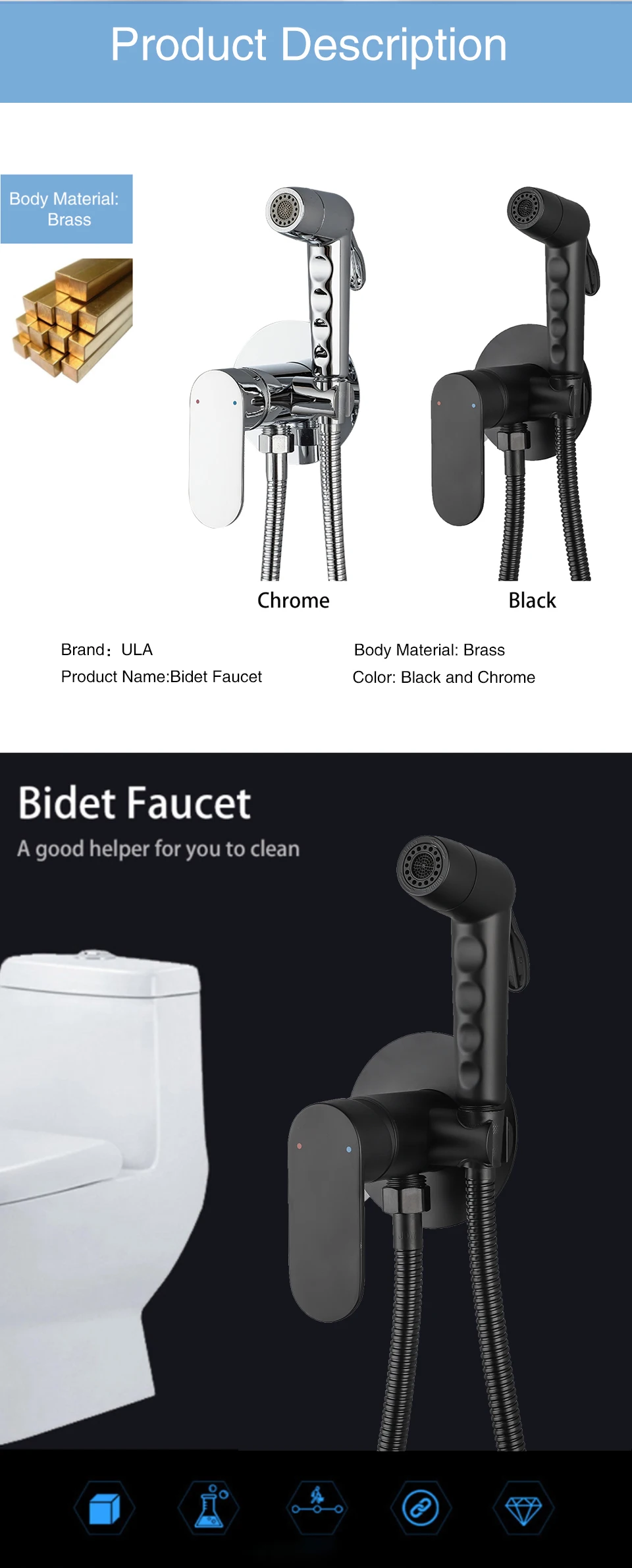 Matériau du corps : les couleurs chrome, noir et or sont toutes en cuivre.