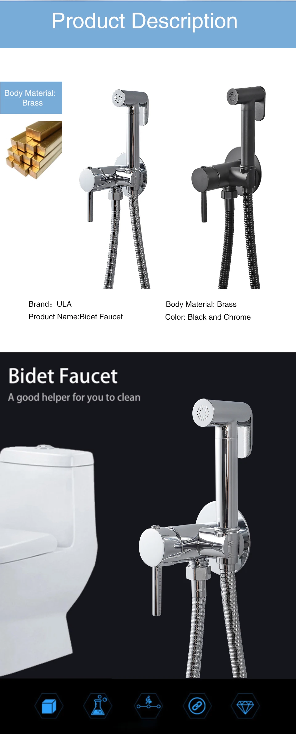 Matériau du corps : Les couleurs chrome, noir et or sont entièrement en cuivre.