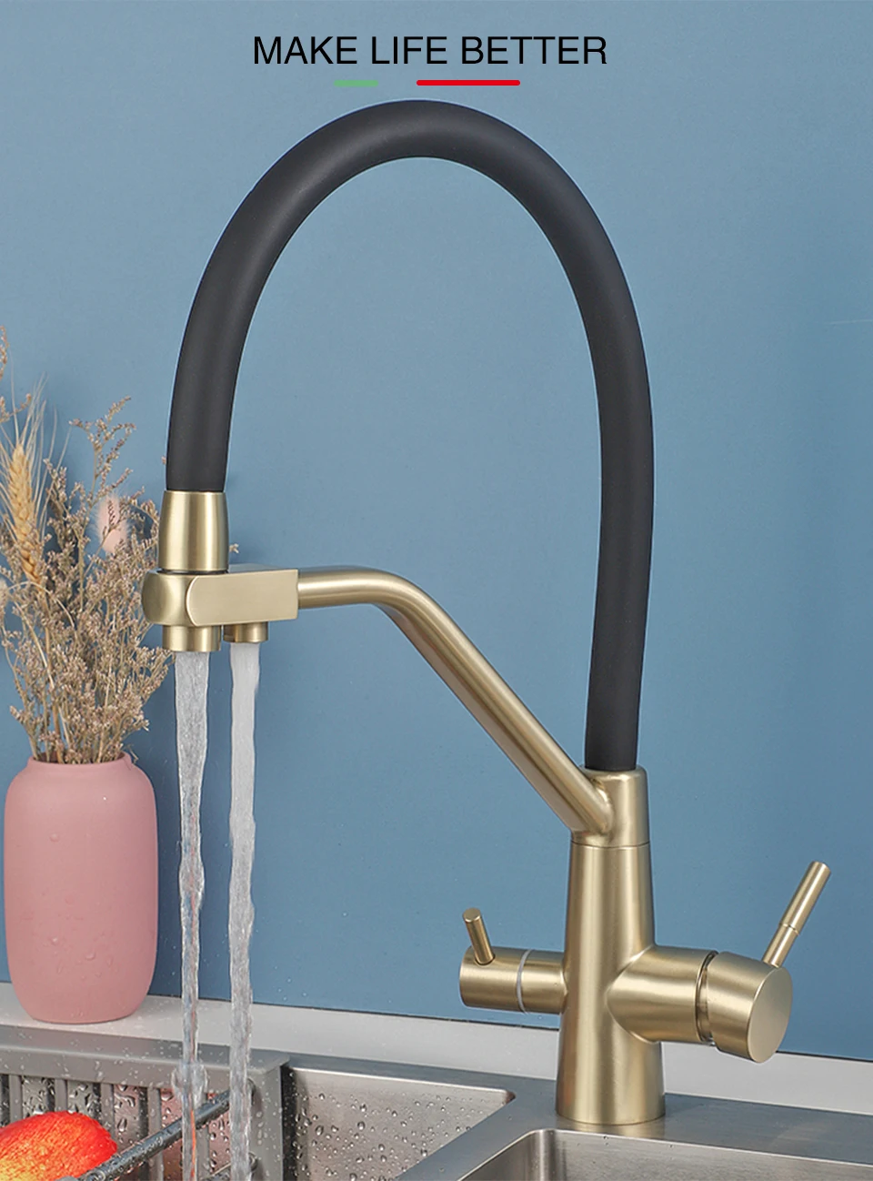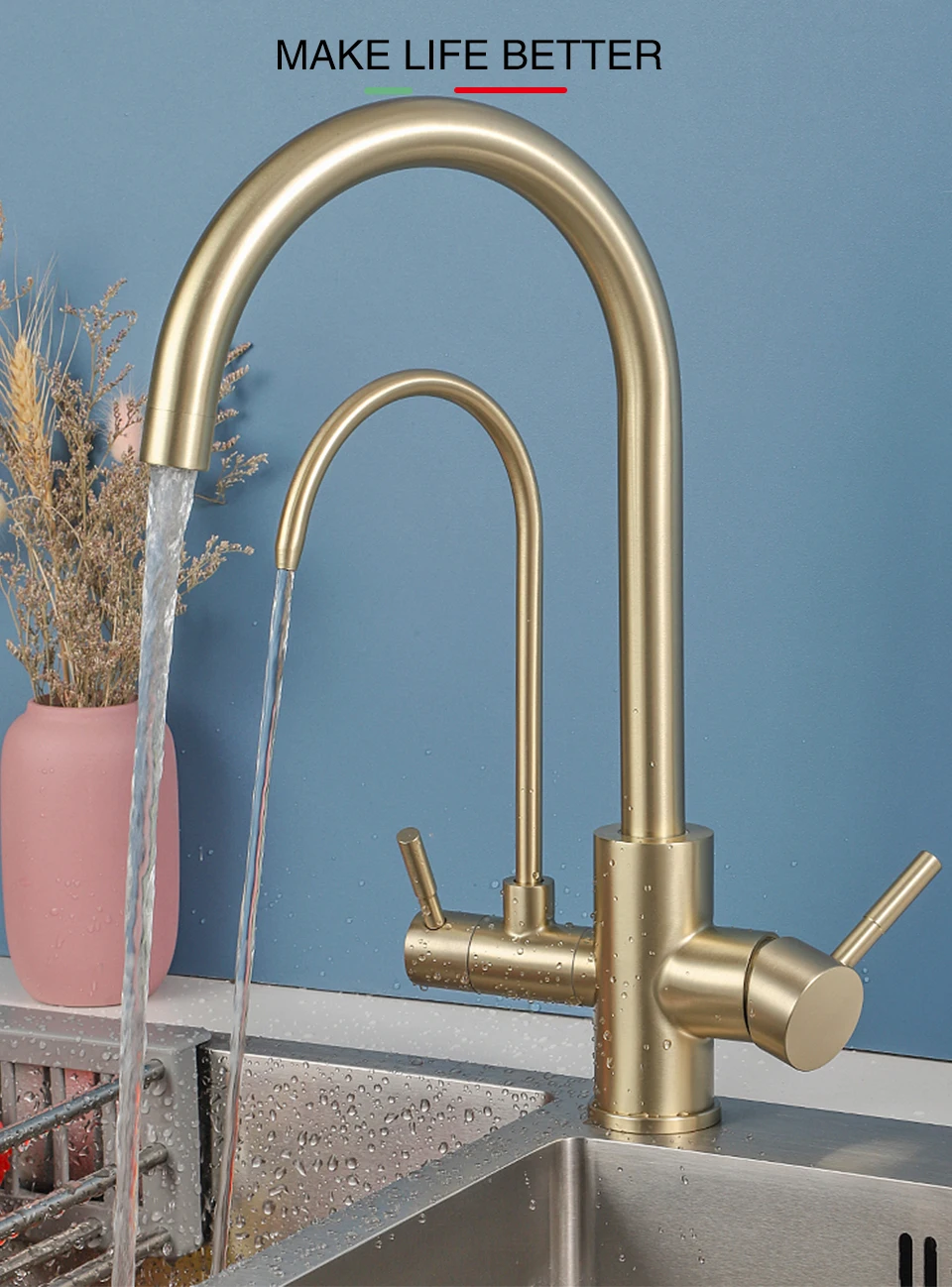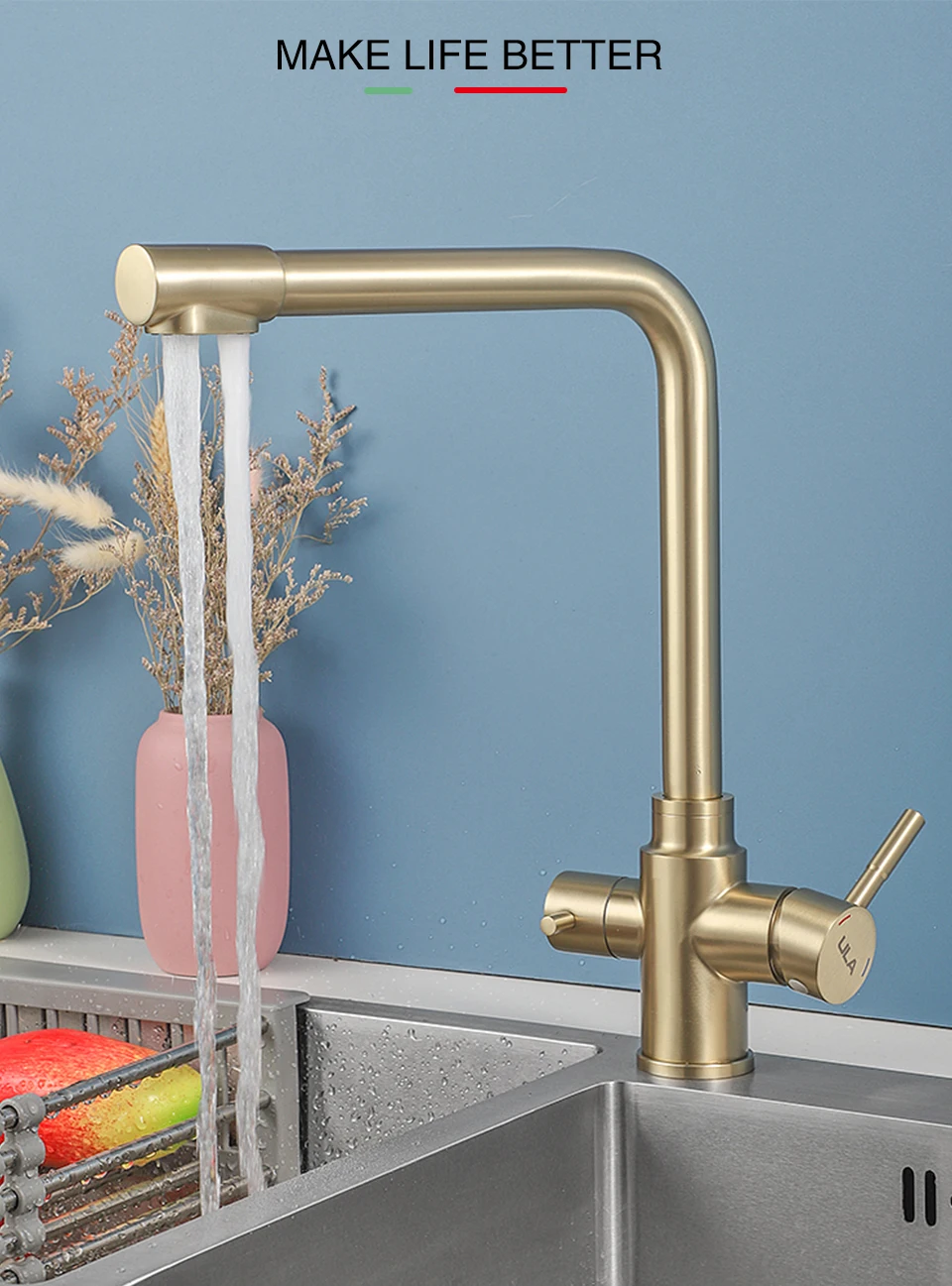 ULA-Robinets de Rotation à 360 Degrés pour Évier de Cuisine, Filtre à 3 Voies, Eau Chaude et Froide, Poignée pour Touristes