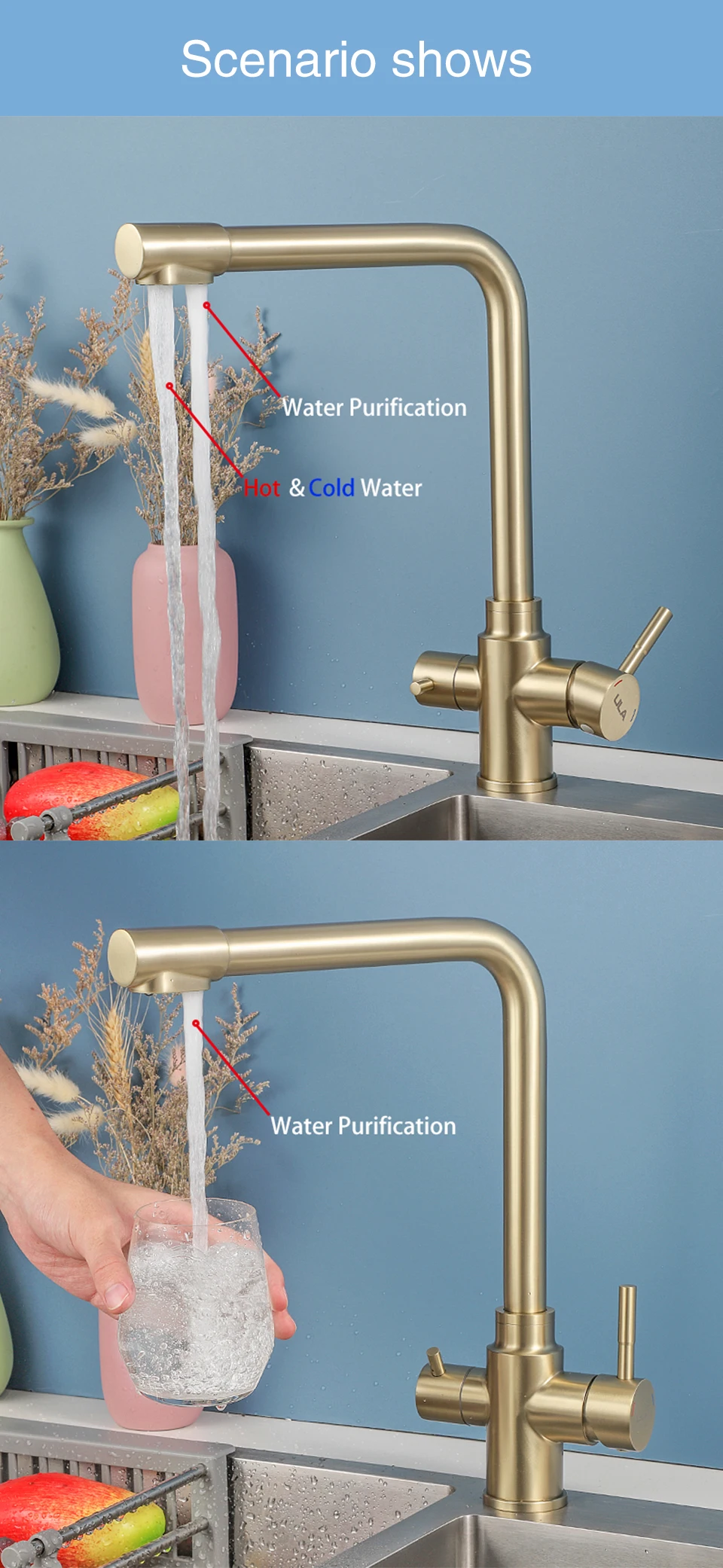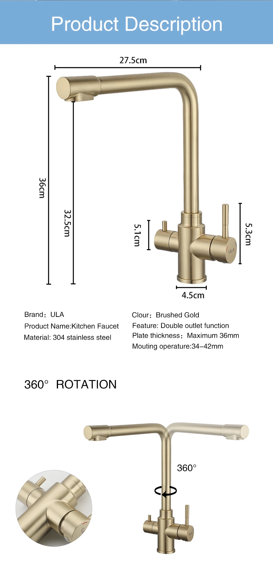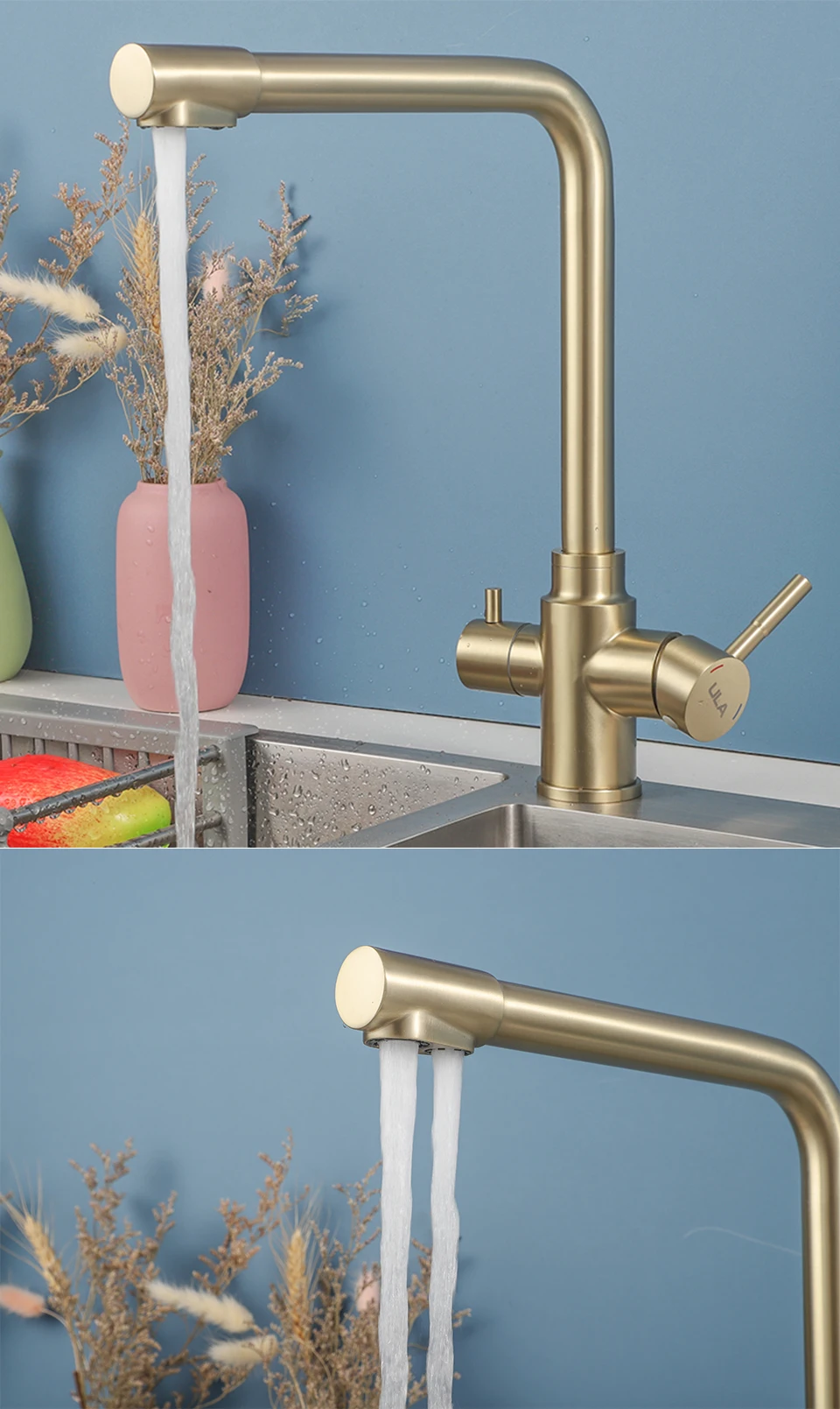 ULA-Robinets de Rotation à 360 Degrés pour Évier de Cuisine, Filtre à 3 Voies, Eau Chaude et Froide, Poignée pour TouristesULA-Robinets de Rotation à 360 Degrés pour Évier de Cuisine, Filtre à 3 Voies, Eau Chaude et Froide, Poignée pour Touristes