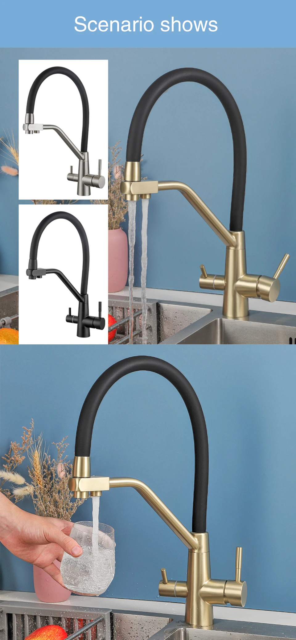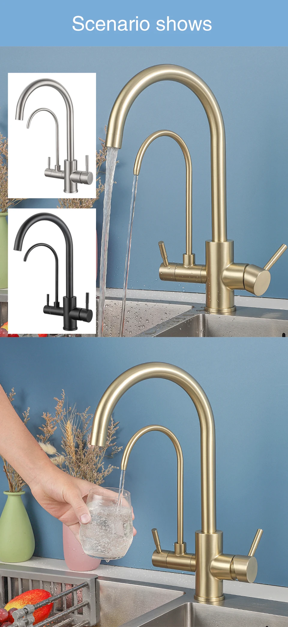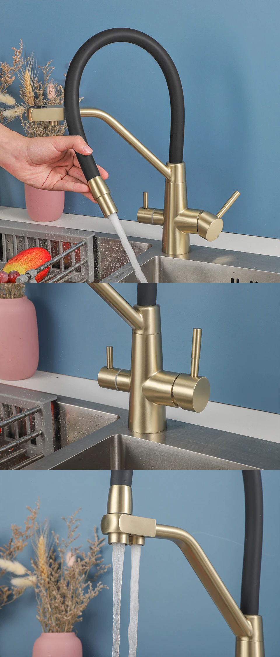 ULA-Robinets de Rotation à 360 Degrés pour Évier de Cuisine, Filtre à 3 Voies, Eau Chaude et Froide, Poignée pour TouristesULA-Robinets de Rotation à 360 Degrés pour Évier de Cuisine, Filtre à 3 Voies, Eau Chaude et Froide, Poignée pour Touristes