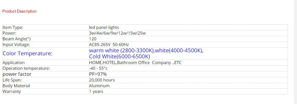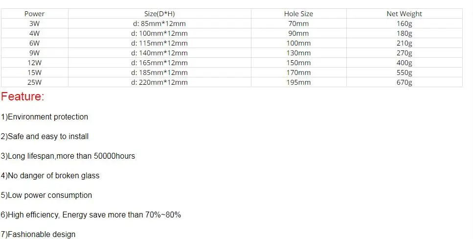 3W-25W rond LED plafonnier encastré cuisine salle de bain lampe AC85-