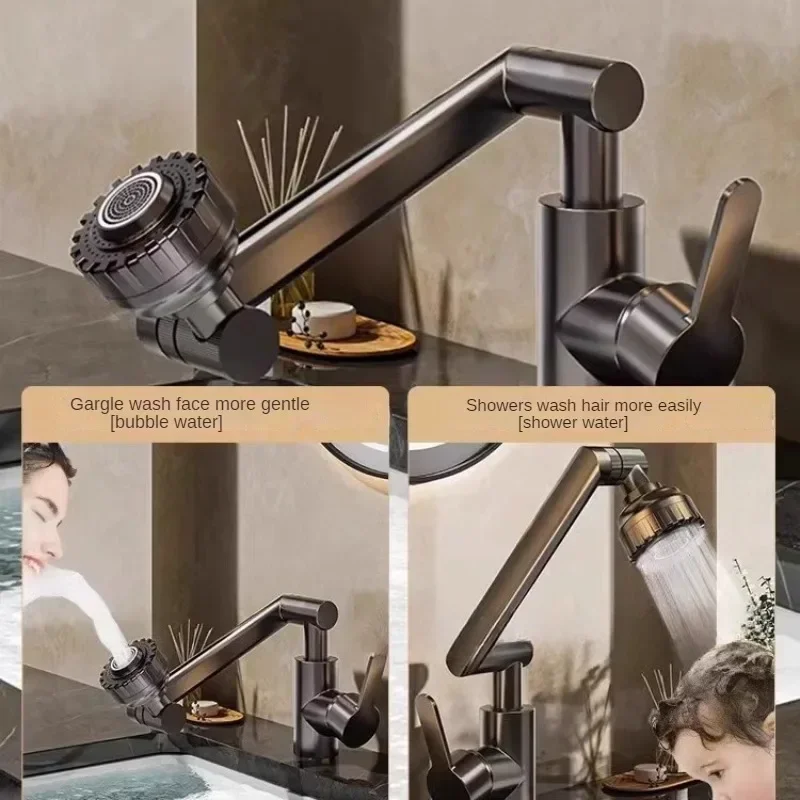 - 1080° Swivel Bathroom Sink Faucet: Universal Rotating Dual-mode Faucet