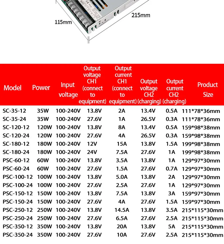 - Numéro de Modèle: SC-35W,SC-120W,SC-180W,PSC-60W,PSC-100W,PSC-150W,PSC-250W,PSC-350W