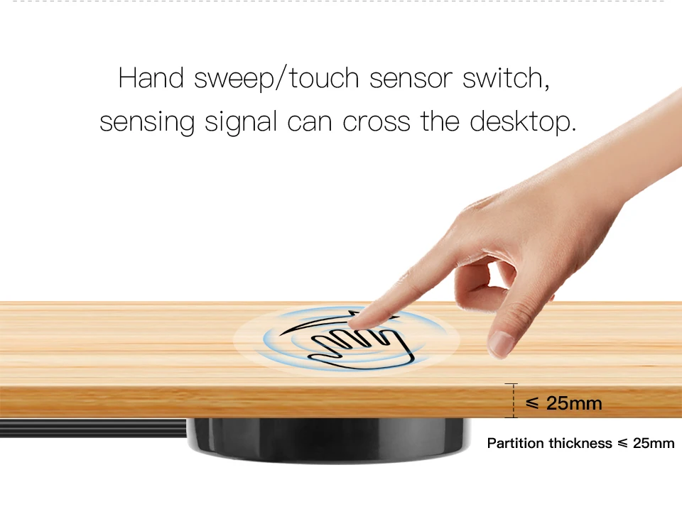 Plage de détection de bois pénétrante : <=25MM Taille : 52*7 mm Longueur de la ligne : 1,5 m Caractéristiques : 1.L’interrupteur de capteur de commande de variateur tactile intelligent est utilisé derrière le panneau de bois (like l’armoire de cuisine, l’armoire, l’armoire, l’armoire..) ou le miroir en verre.Il peut fonctionner sur la lumière LED DC 5V et elle plus flexible pour coller n’importe où vous aimez, simple et facile à installer.N’a pas besoin de trous ouverts!!! 2.Le capteur tactile peut détecter les matériaux moyens : plaque de bois, plaque de roche, pierre, papier, acrylique, plastique, verre et autres matériaux conducteurs non métalliques 3.Distance tactile : la densité d’épaisseur différente est différente, le plus mince, le meilleur, veuillez ne pas fermer des matériaux métalliques pour éviter l’interférence Paquet inclus : veuillez vous renseigner sur l’image. Remarque : Mode A peut être dimé par longue pression, lorsque le mode B n’a pas de fonction de gradation. Le signal de détection peut traverser le bureau Pas besoin de trous de perforation
