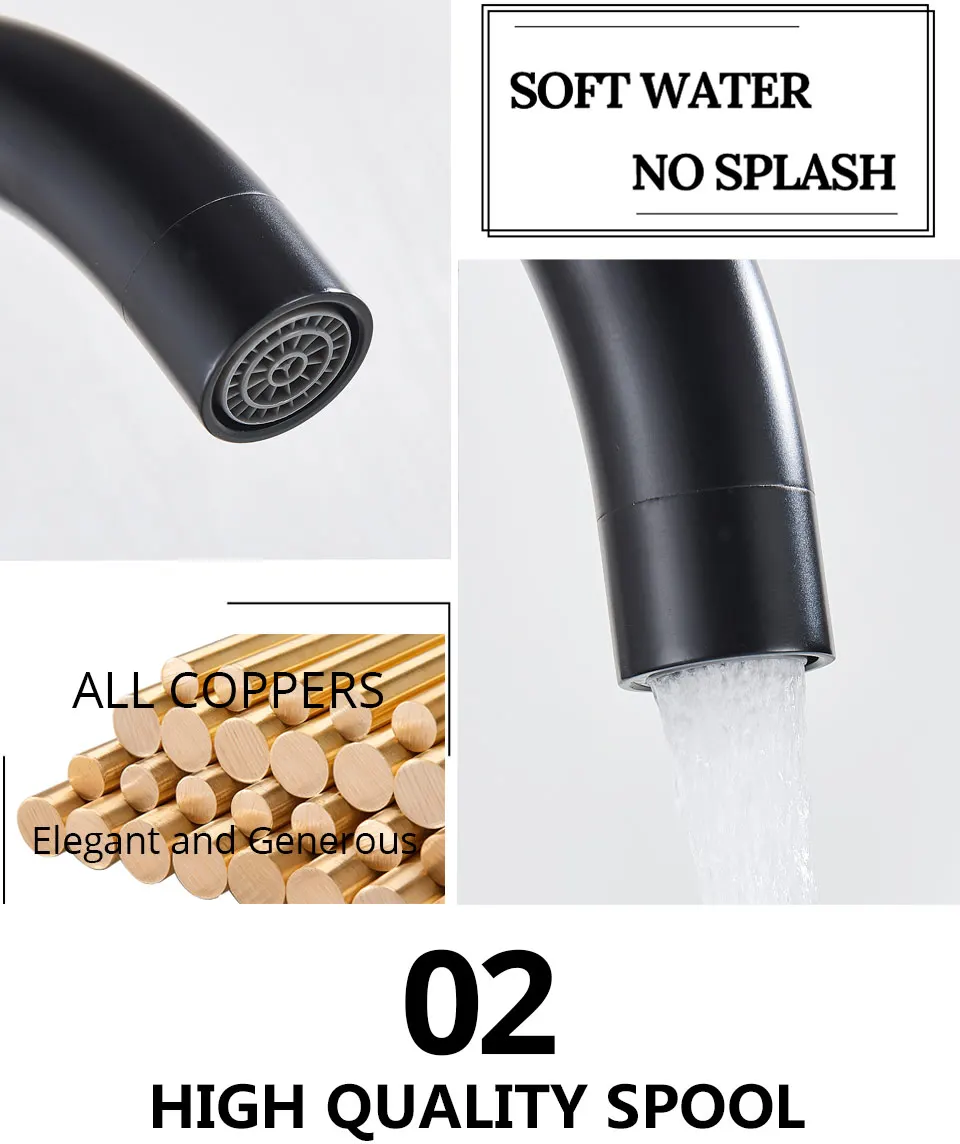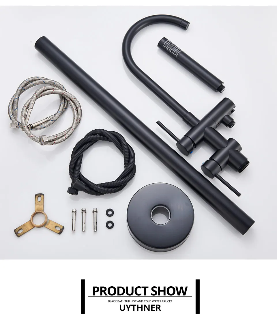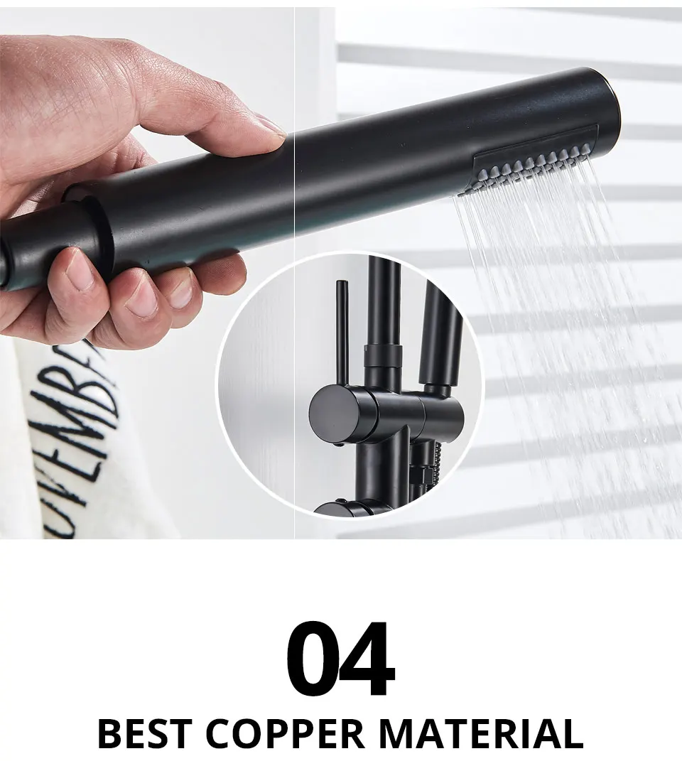 Baignoire noire support de sol robinet mitigeur mitigeur mitigeur 360 bec rotatif avec douche ABS mitigeur de bain douche
