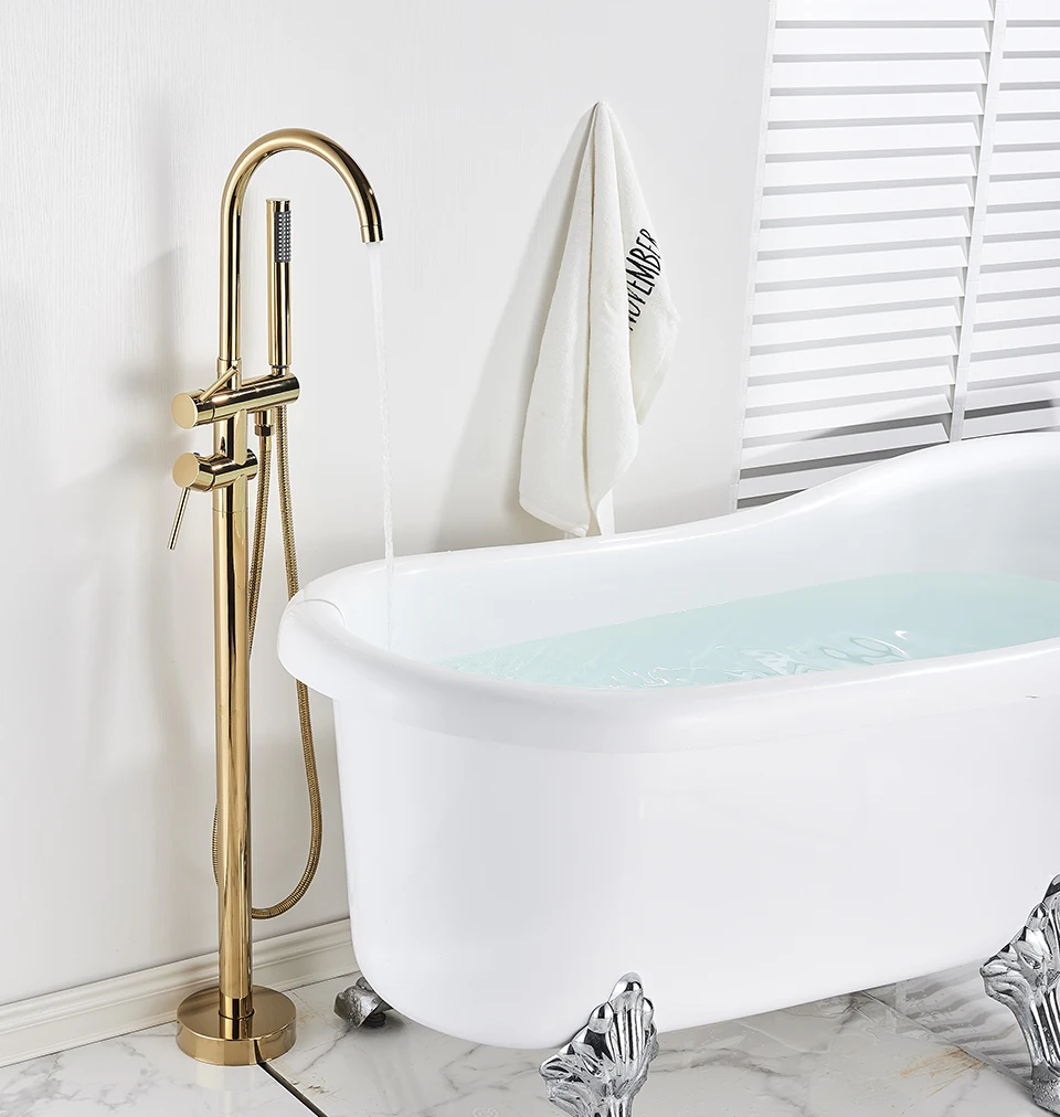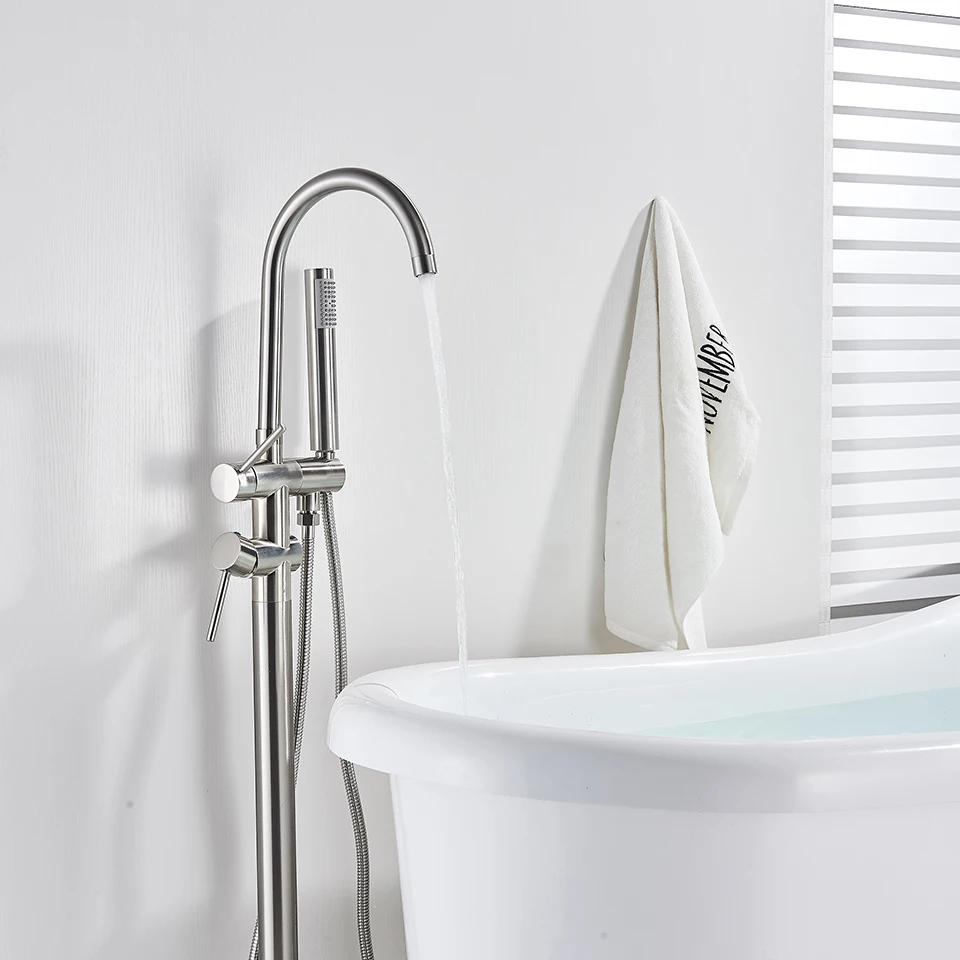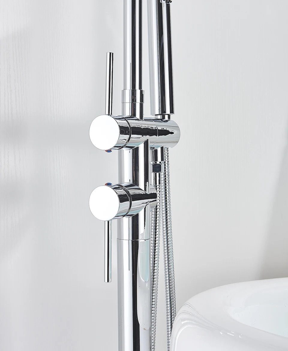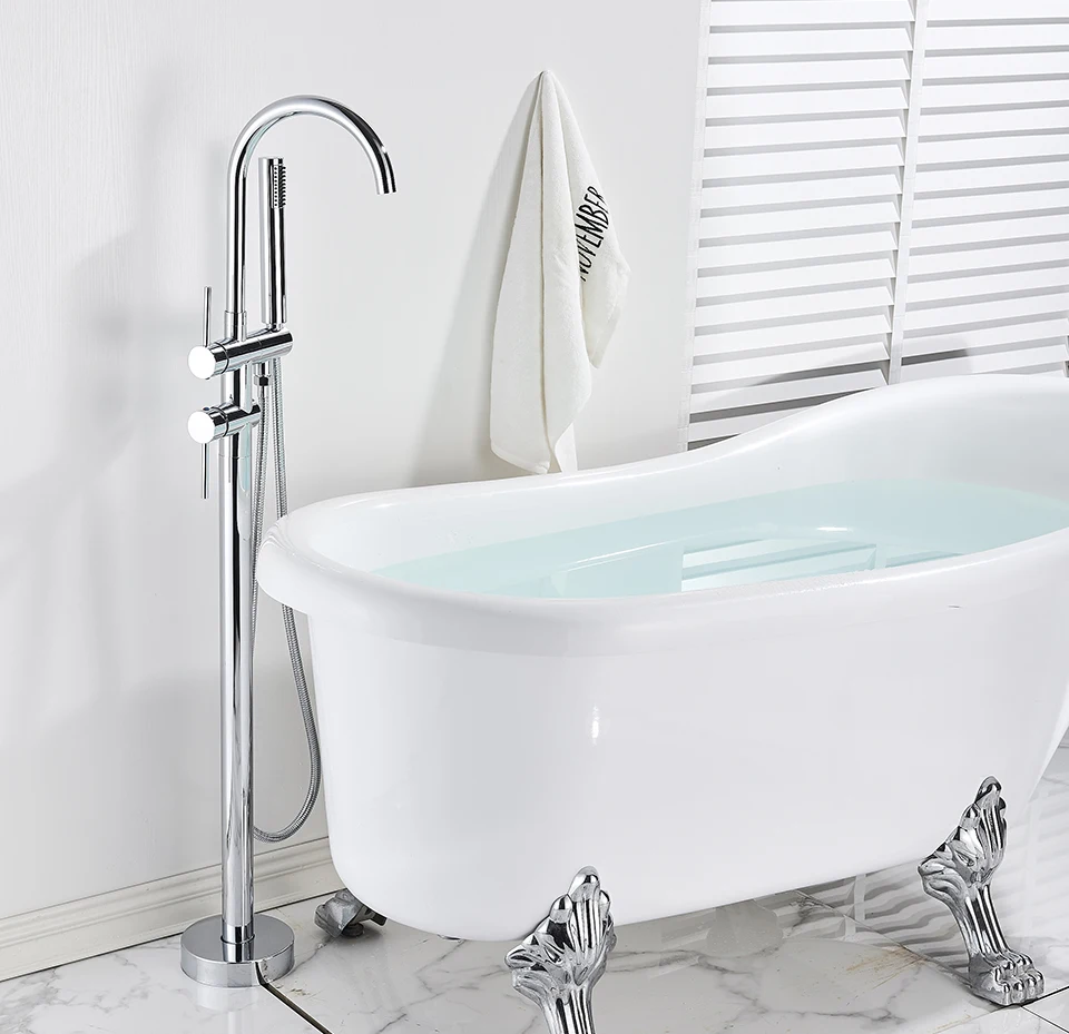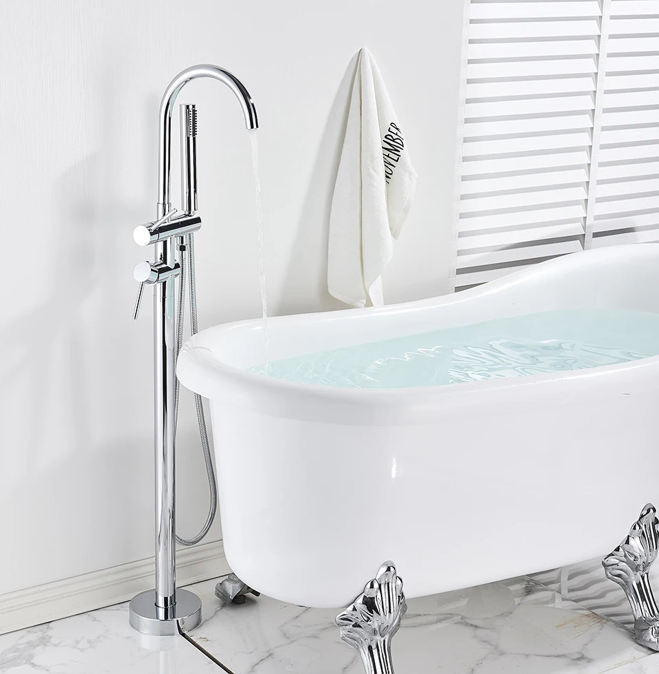 Robinet de baignoire chromé monté au sol Mitigeur de baignoire sur pattes avec douchette Robinet de baignoire à levier unique