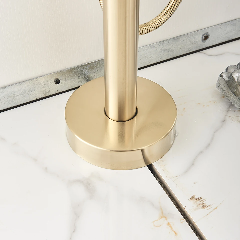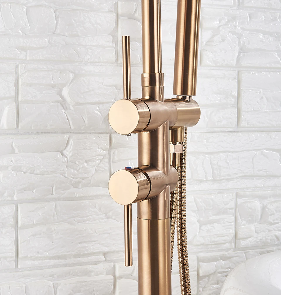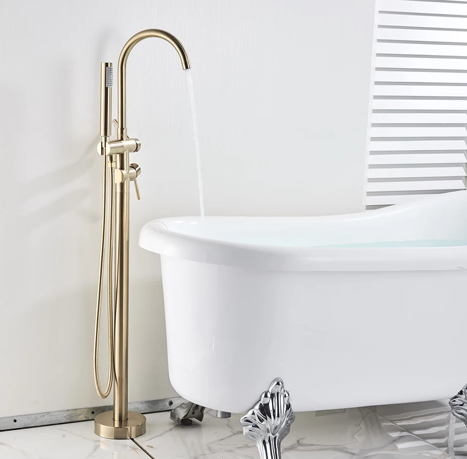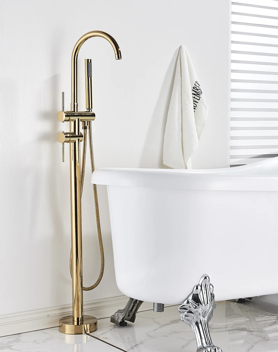Robinet de baignoire chromé monté au sol Mitigeur de baignoire sur pattes avec douchette Robinet de baignoire à levier unique
