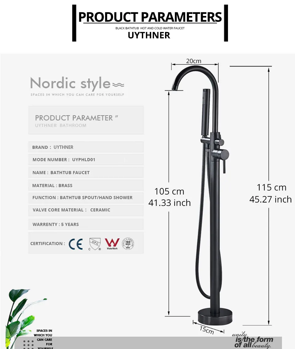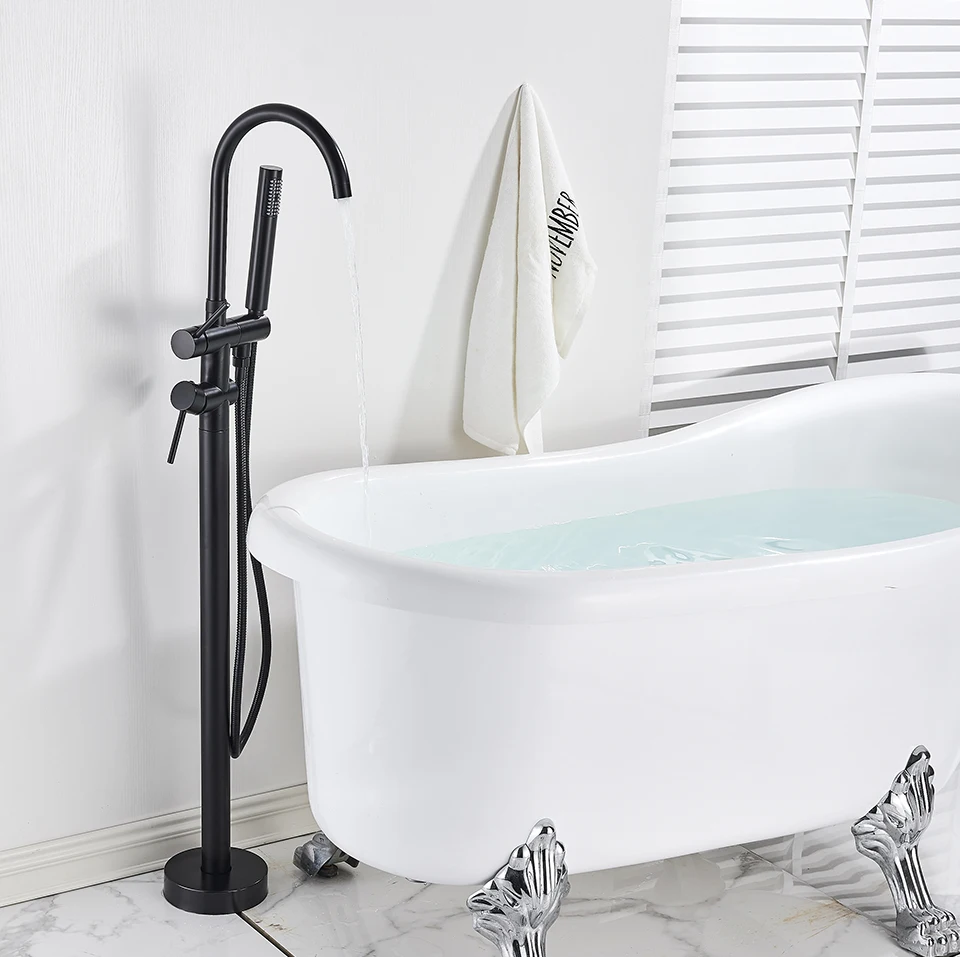 Robinet de baignoire debout au sol noir robinet de douche de salle de bain sur pied bec pivotant mitigeur d’eau chaude froide