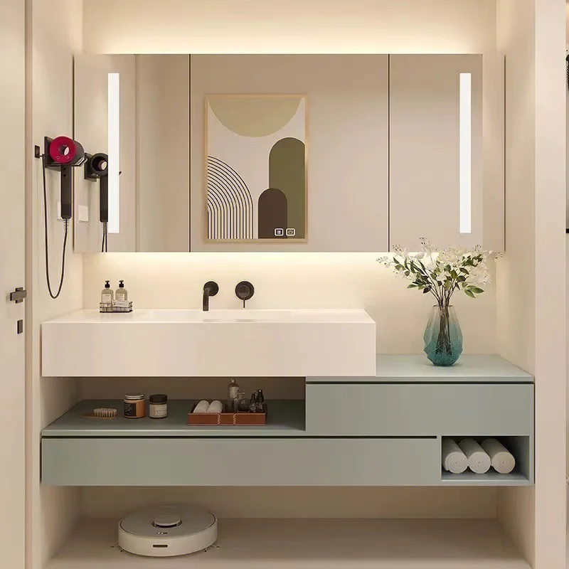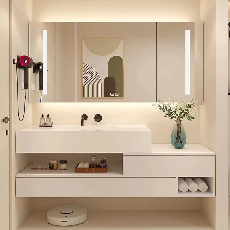 La vanité de 60 pouces comprend un style minimaliste moderne, parfaite pour toute décoration de salle de bain contemporaine.