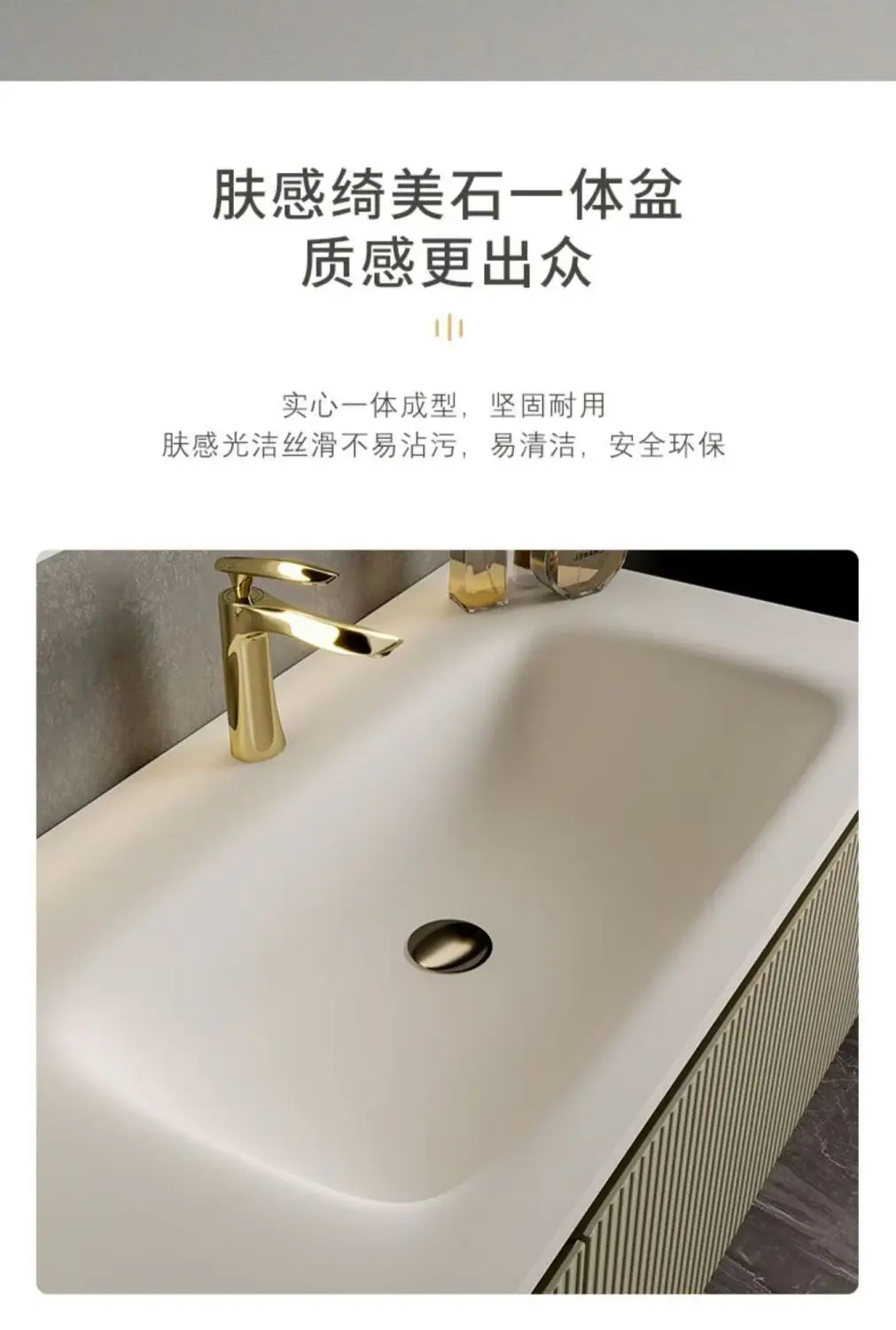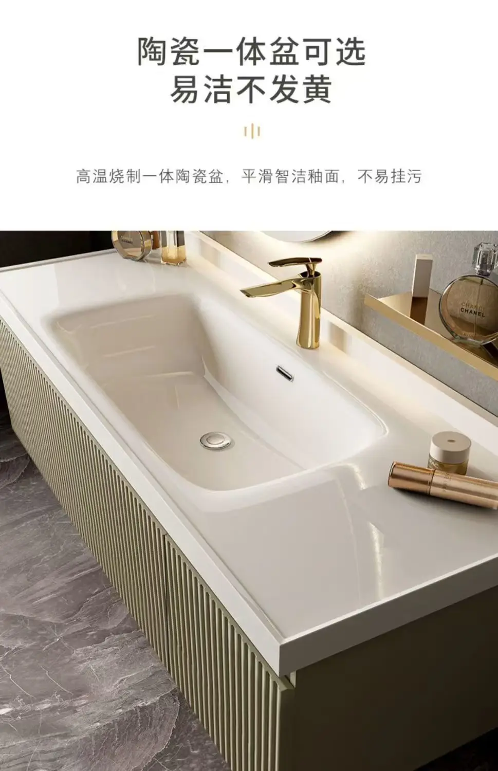 - Countertop type: Integrated ceramic basin