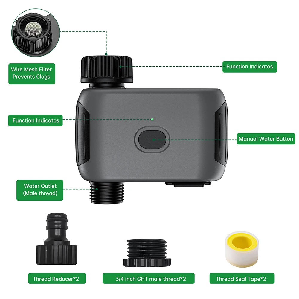 5. Large gamme de domaines d’application : les minuteries d’eau intelligentes Wifi sont largement utilisées dans la plantation horticole, les pelouses de cour et d’autres scénarios.