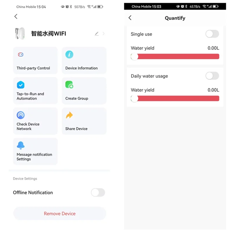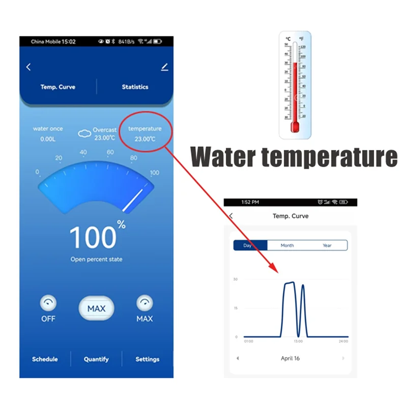 1. Open/close the water valve from 0% to 100% angle through the mobile app