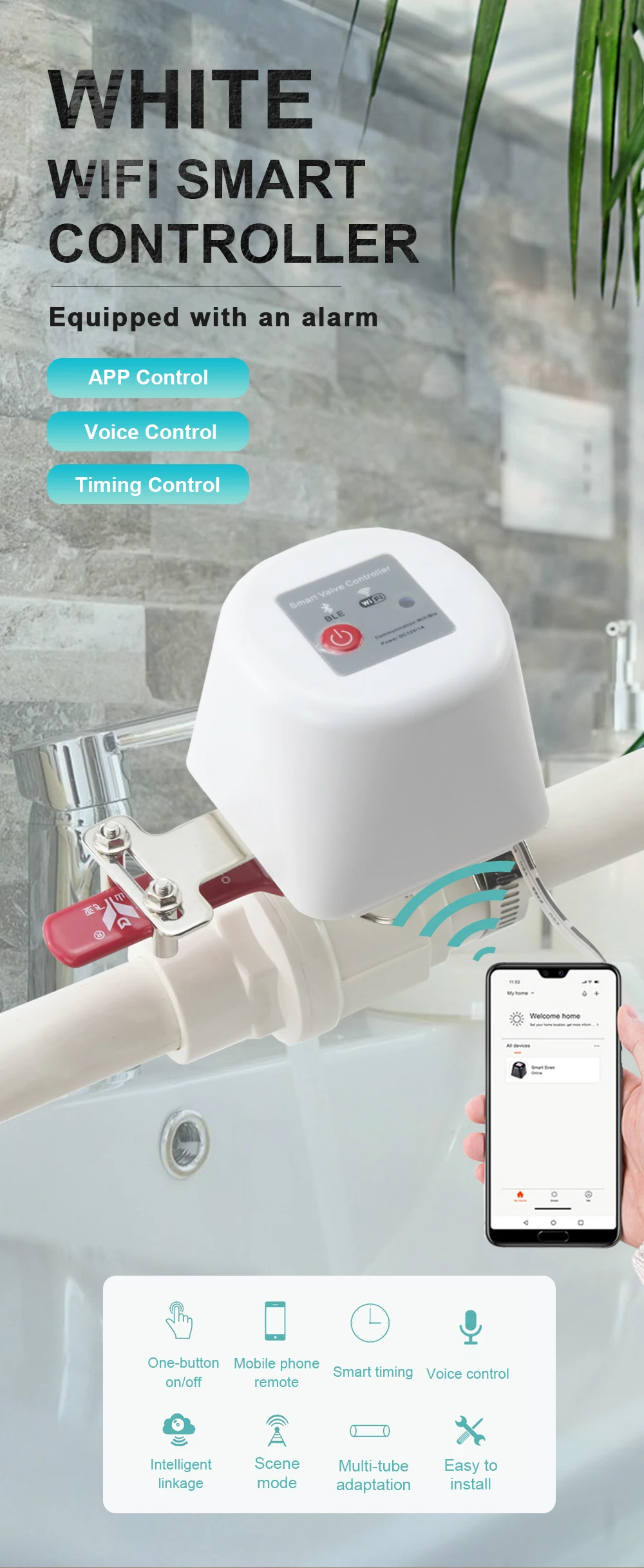 Vanne d’eau intelligente WiFi Tuya, contrôleur de gaz, robinet de jardin, minuterie Bluetooth pour Support Alexa Google Assistant SmartlifeVanne d’eau intelligente WiFi Tuya, contrôleur de gaz, robinet de jardin, minuterie Bluetooth pour Support Alexa Google Assistant Smartlife