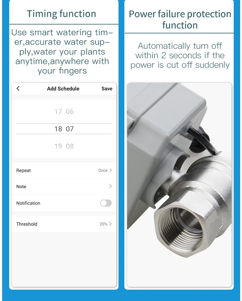 1. Ouvrez/fermer la vanne d’eau de 0% à 100 % d’une angle via l’application mobile