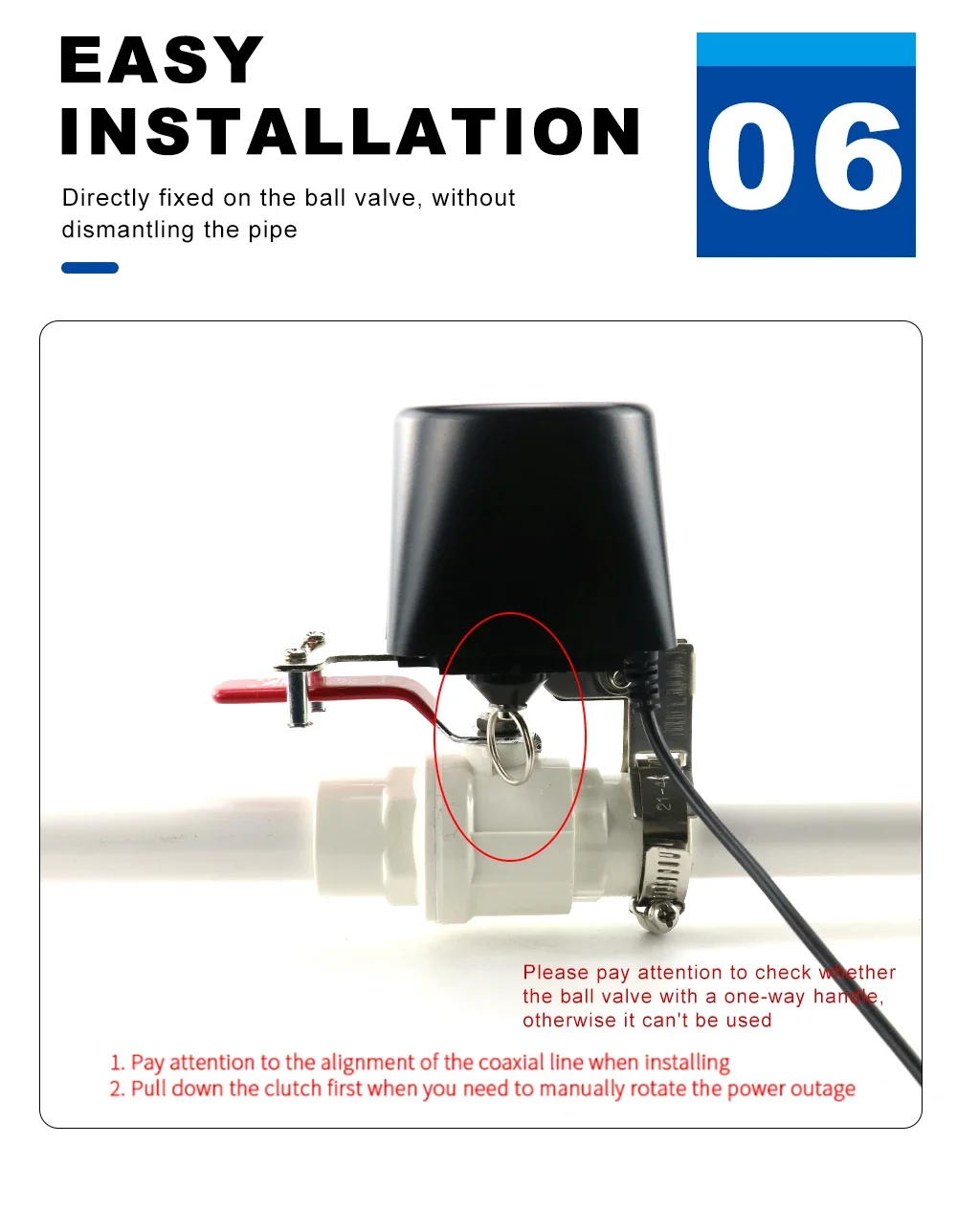 Vanne d’eau WiFi Tuya, minuterie d’arrêt de gaz sans fil, contrôleur de robinet de jardin, application Smart Life, commande vocale avec Alexa Google HomeVanne d’eau WiFi Tuya, minuterie d’arrêt de gaz sans fil, contrôleur de robinet de jardin, application Smart Life, commande vocale avec Alexa Google Home