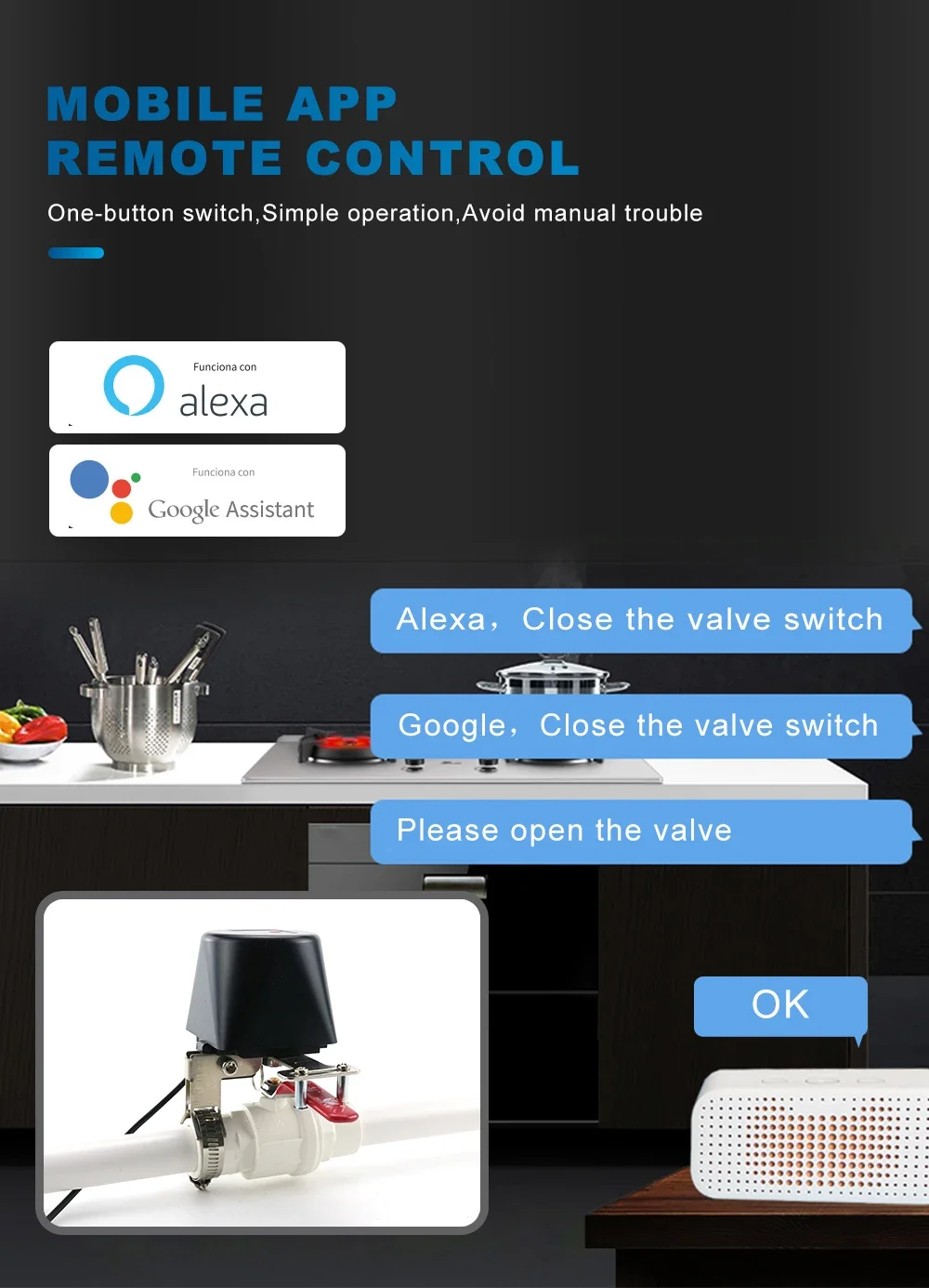 Quand apparié à l’Amazon Alexa ou Google Assistant, la vanne d’arrêt intelligente vous donnez des mains – commande vocale gratuite sur votre maison.