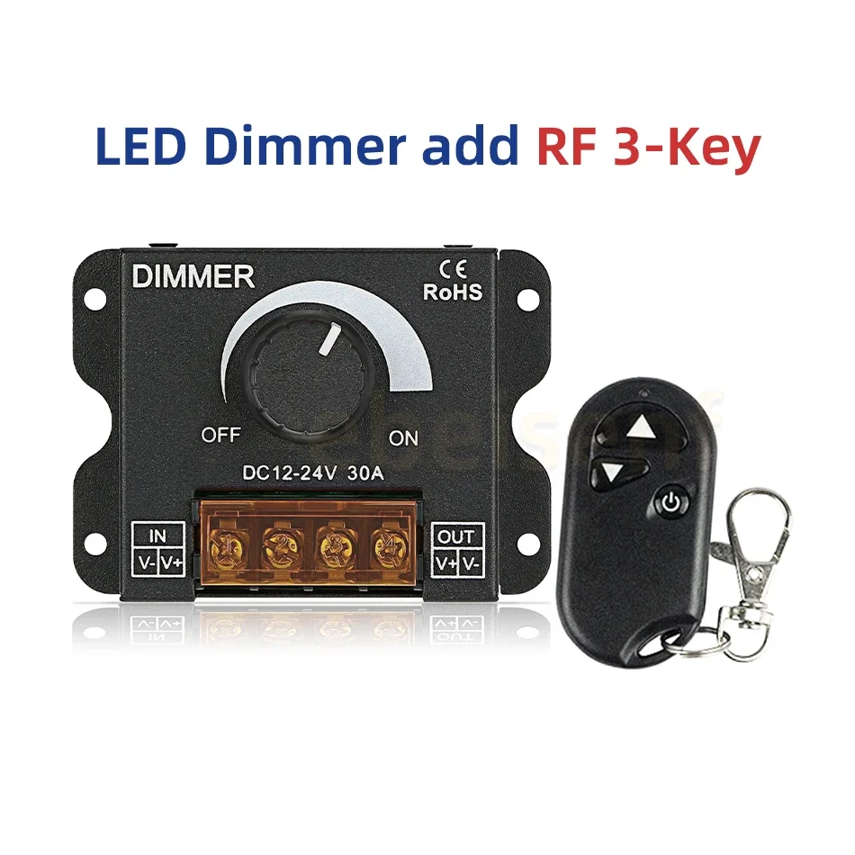 Bouton LED variateur 30A haute puissance réglable potentiomètre bouton variateur contrôleur et télécommande sans fil RF DC 12V 24V