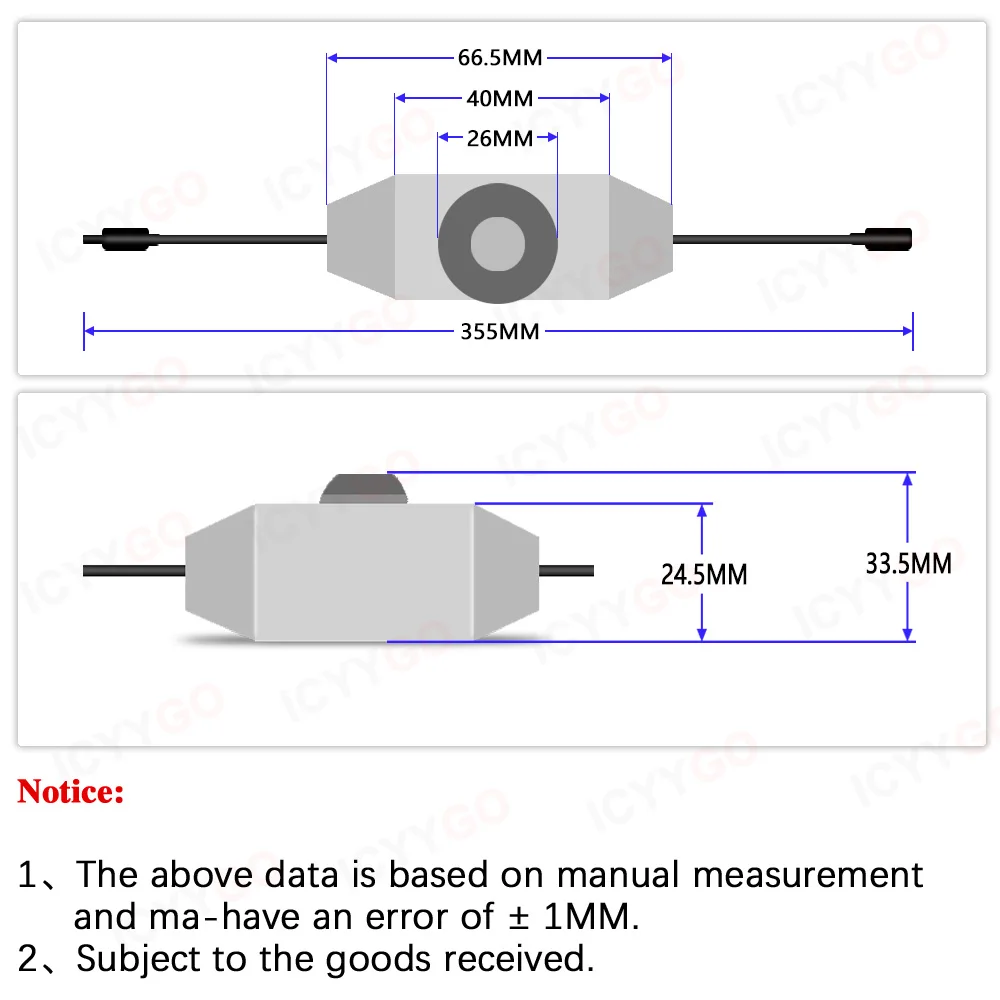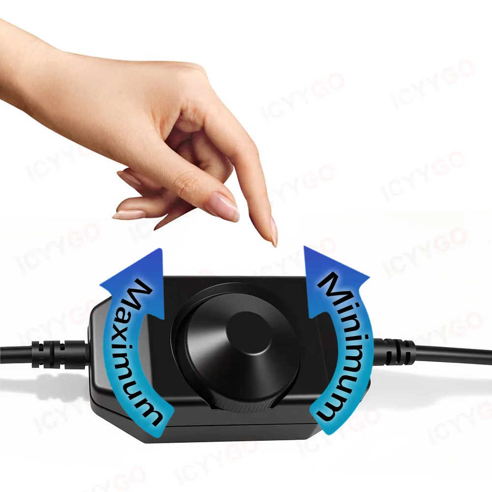 ● Consommation d’énergie silencieuse : <1W ● Courant de sortie : <2A ● Puissance de sortie : <24W ● Connecteur CC : 2,1 x 5,5 mm Instructions 1.Connectez les câbles de charge d’abord, puis les câbles d’alimentation.Avant de l’alimentation, garantir que il n’y a pas de court circuits entre les câbles. 2.Le contrôle est un contrôle rotatif avec les fonctions suivantes : Tourner le bouton à droite augmente progressivement la luminosité, atteint la luminosité maximale lorsque vous transformé en toute façon à droite. Tourner le bouton à gauche diminue progressivement la luminosité et le tournage tout le chemin vers la gauche transformez la lumière éteinte.