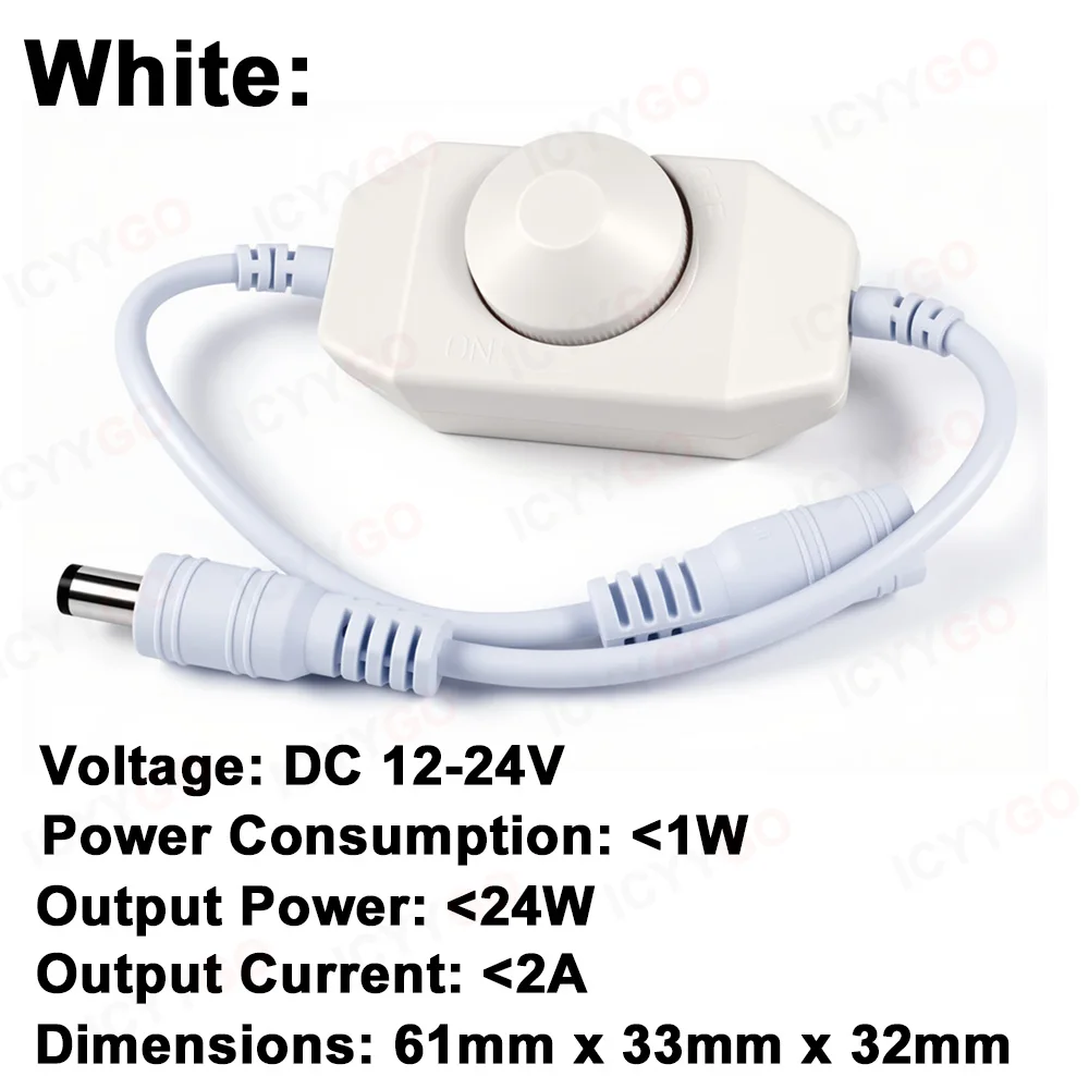 Variateur de luminosité LED DC 12-24 V, interrupteur, variateur de luminosité LED, prise mâle et femelle DC, adapté aux bandes lumineuses LED