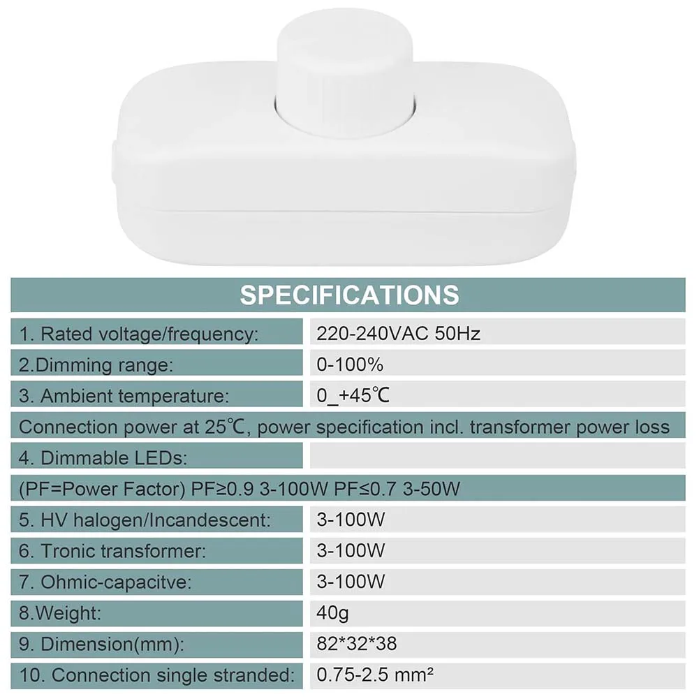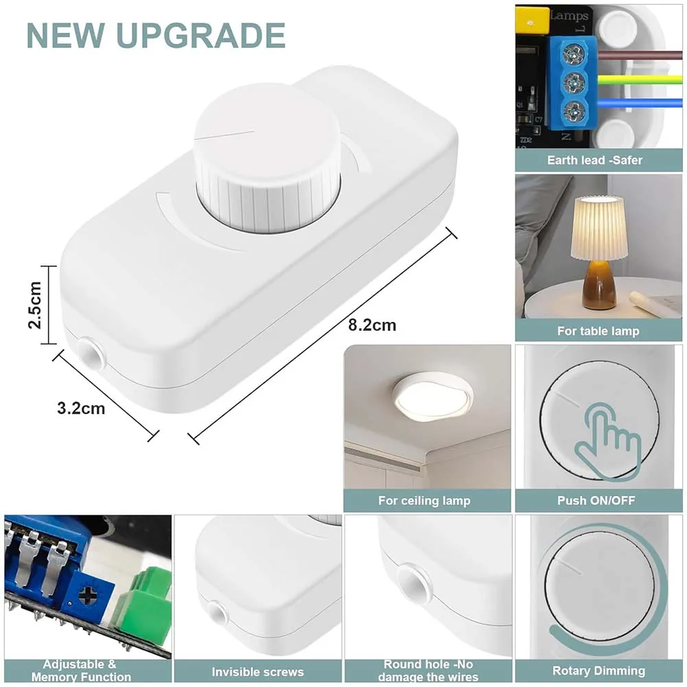* pour une compatibilité polyvalente : Conçu pour travailler parfaitement avec une variété de lampes à intensité variable, comprenant des lampes de table LED et des luminaires à incandescence, l’adhérence pour différents besoins d’éclairage.