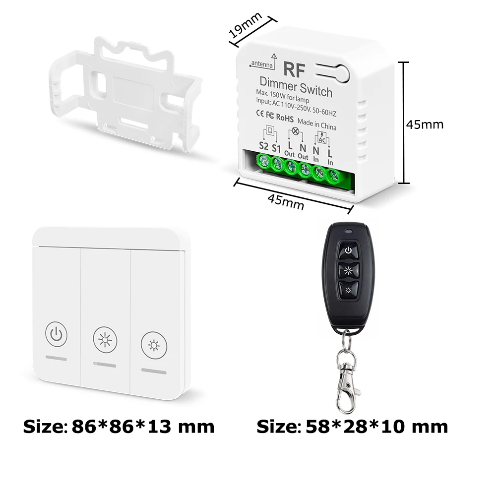 - Features: Touch-button-Switch RF control 1Ch dimmer receiver