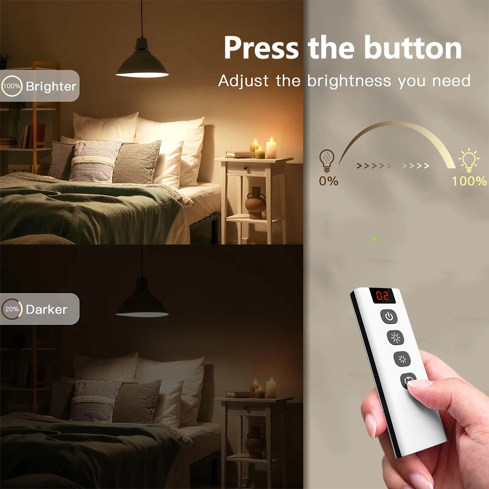 Le variateur doit être utilisé avec la télécommande pour obtenir l’effet de contrôle.Si vous achetez un variateur ou une seule télécommande, veuillez vous assurer que vous avez un autre variateur ou une télécommande, sinon l’effet de contrôle de gradation ne peut pas être acheté.