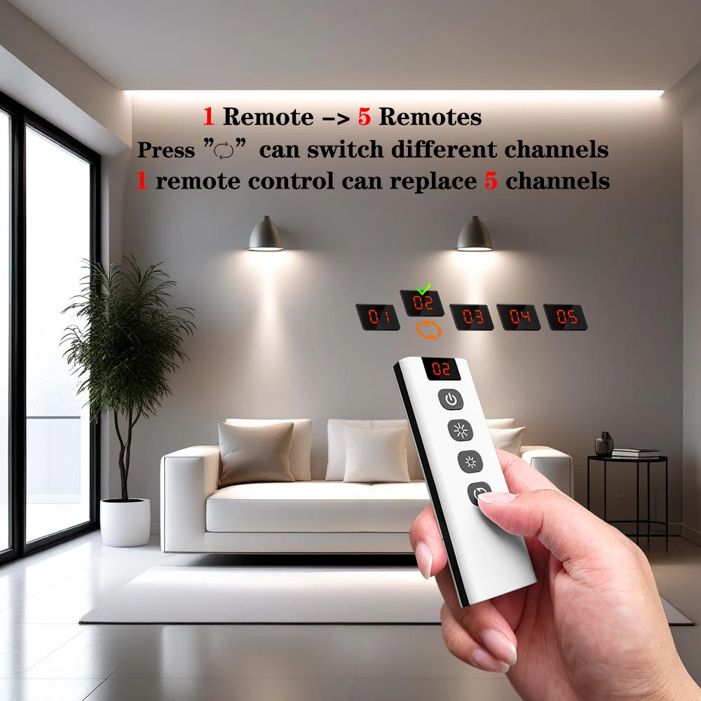 ✔Une télécommande dispose de 5 canaux, un canal contrôle un variateur et une télécommande peut contrôler 5 variateurs.✔