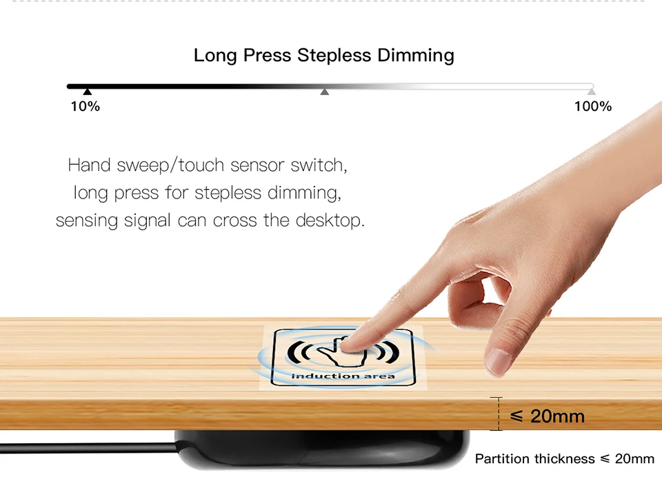 Variateur tactile 12V-24V, contrôle de balayage manuel, détection du panneau de bois, réglage continu de la luminosité pour la lumière LED