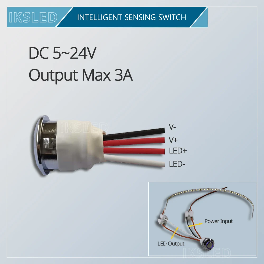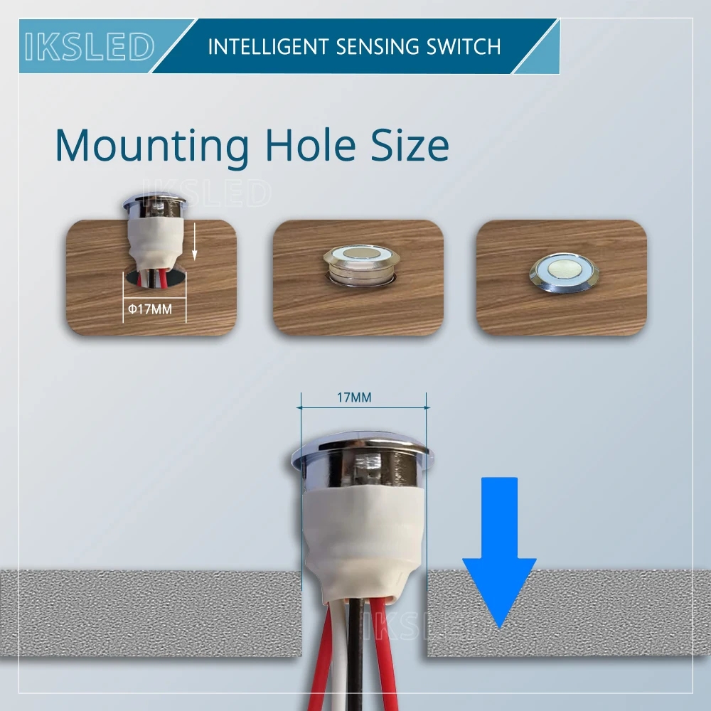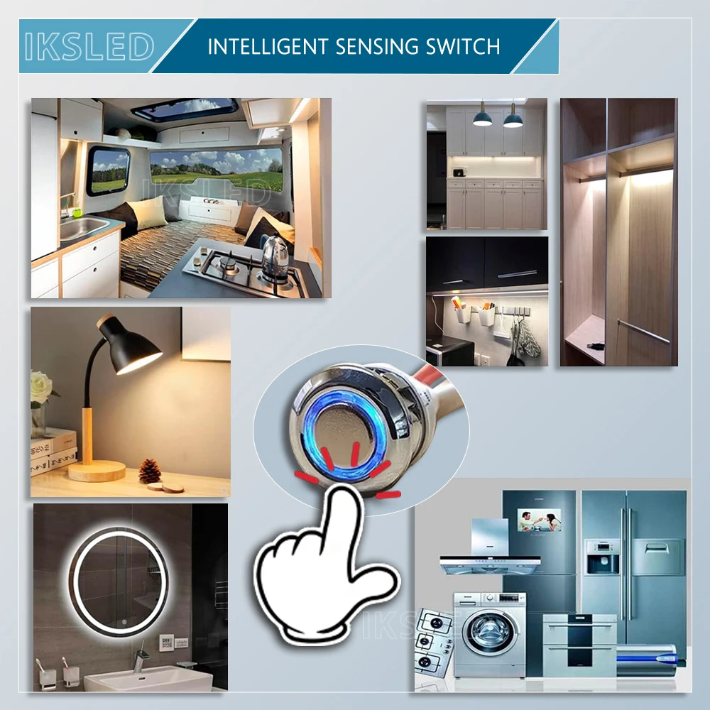 Variateur tactile LED, interrupteur à gradation continue pour lampe de maison intelligente, DC 5V à 24V, résistant aux éclaboussures, adapté aux trous de montage de 17mm