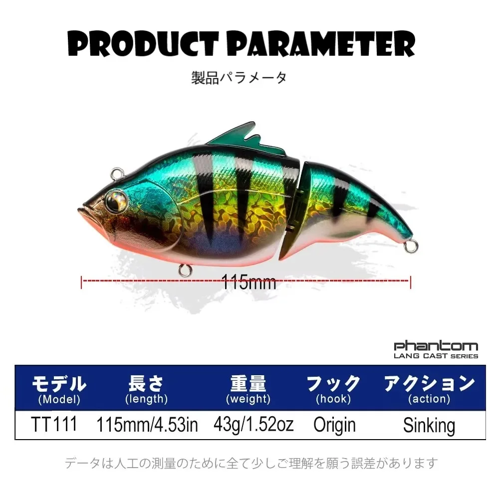 Leurres de pêche vibrants 115mm 43g coulage lent VIB sans lèvres manivelle articulé Wobblers Vatalion Vibration glisse appâts pour la pêche