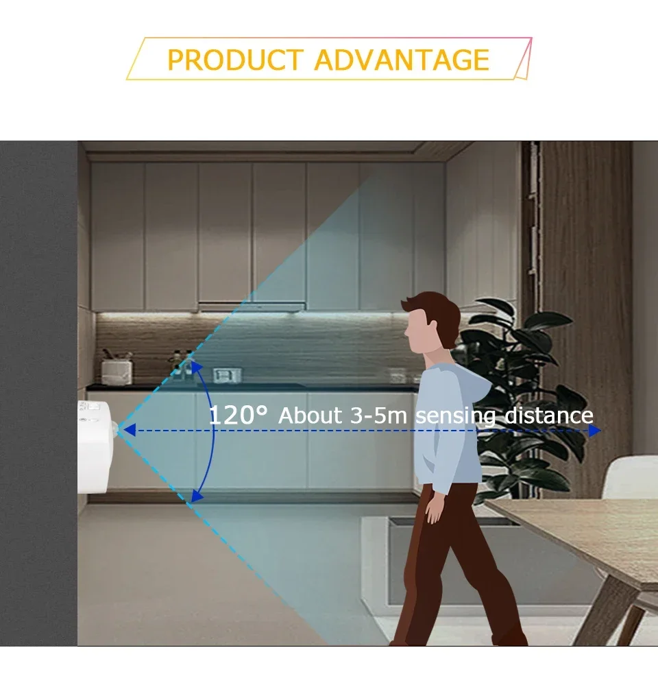 【Veilleuses intelligentes à économie d’énergie 】Cette veilleuse à détecteur de mouvement est sensible et fonctionne en deux modes. En mode "marche": marche stable; en mode détection automatique: lorsque le capteur de mouvement détecte le mouvement d’un corps humain ou d’un animal dans l’obscurité ou la faible luminosité, Il s’allume, détecte le mouvement dans une plage de 3 à 5 mètres et 120 degrés, et lorsqu’aucun mouvement n’est détecté, il s’éteint automatiquement dans les 30 secondes pour économiser de l’énergie. Consommation maximale 0.6W, très économe en énergie.