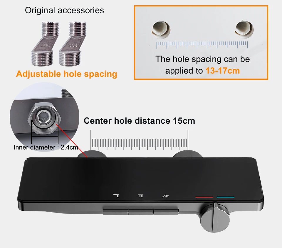Double contrôle chaud et froid, adapté au 99% des familles, distance des trous réglable de 13 à 17 cm.