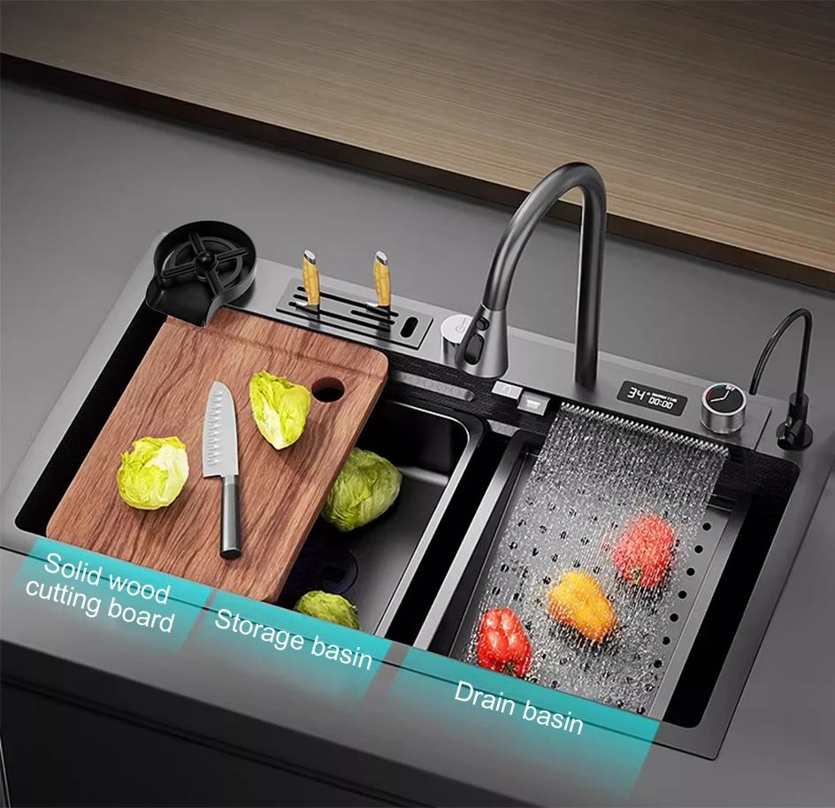 VGX – évier de cuisine simple multifonction, grand écran numérique, robinets gastronomiques, lave-tasse, évier en acier inoxydable 304VGX – évier de cuisine simple multifonction, grand écran numérique, robinets gastronomiques, lave-tasse, évier en acier inoxydable 304