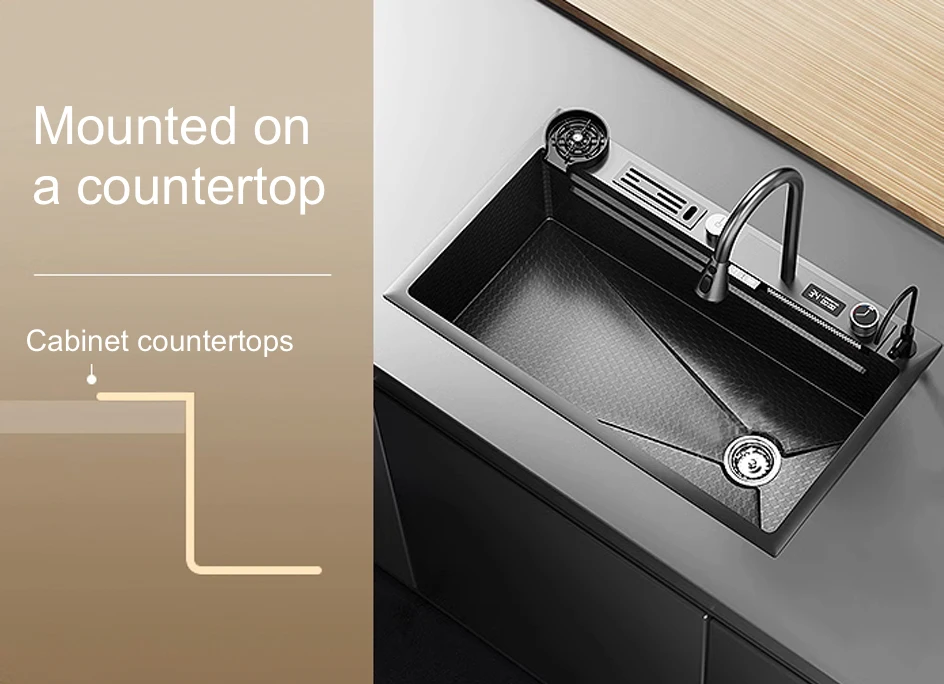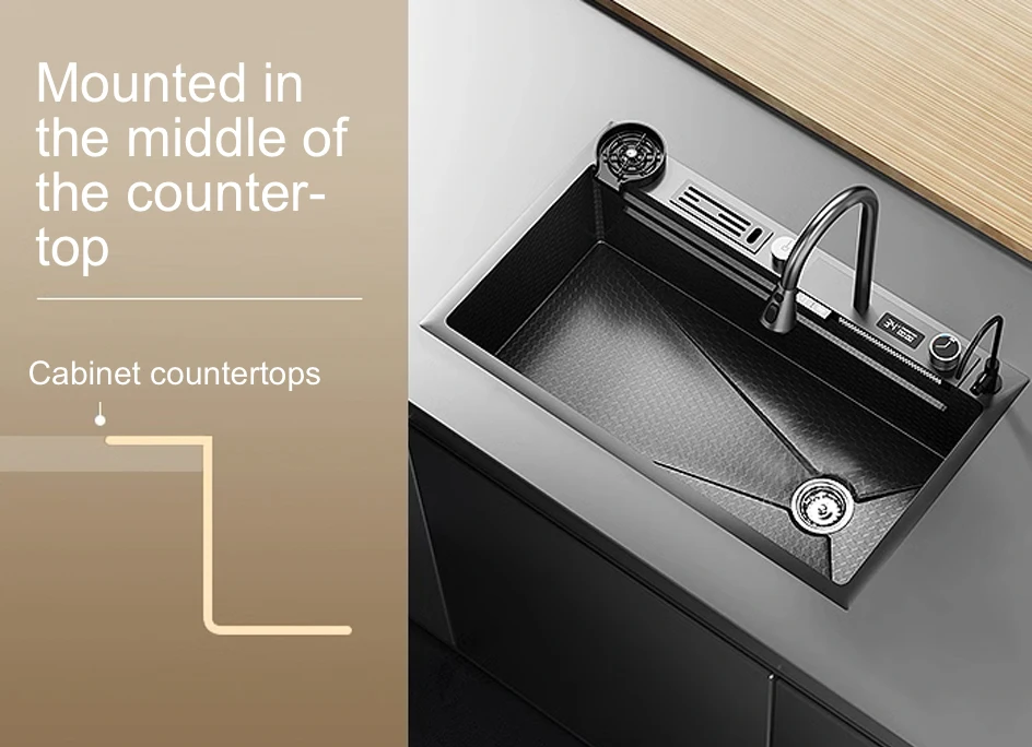 【Design de cascade d’évier innovant】 Le design innovant de cascade d’évier est un changeur de jeu!Il n’y a pas seulement une cuisine un look moderne et innovant mais le fait également plus facile pour nettoyer les légumes et les fruits.