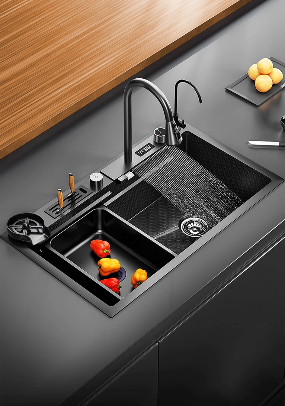 【Design de cascade d’évier innovant】 Le design innovant de cascade d’évier est un changeur de jeu!Il n’y a pas seulement une cuisine un look moderne et innovant mais le fait également plus facile pour nettoyer les légumes et les fruits.