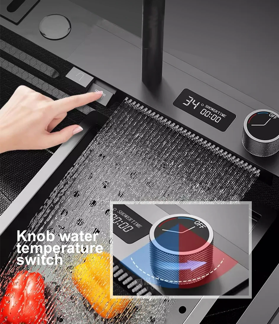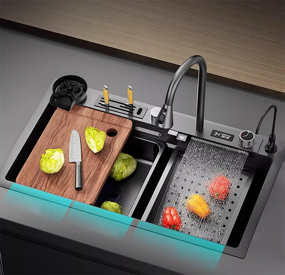 VGX – évier de cuisine simple multifonction, grand écran numérique, robinets gastronomiques, lave-tasse, évier en acier inoxydable 304