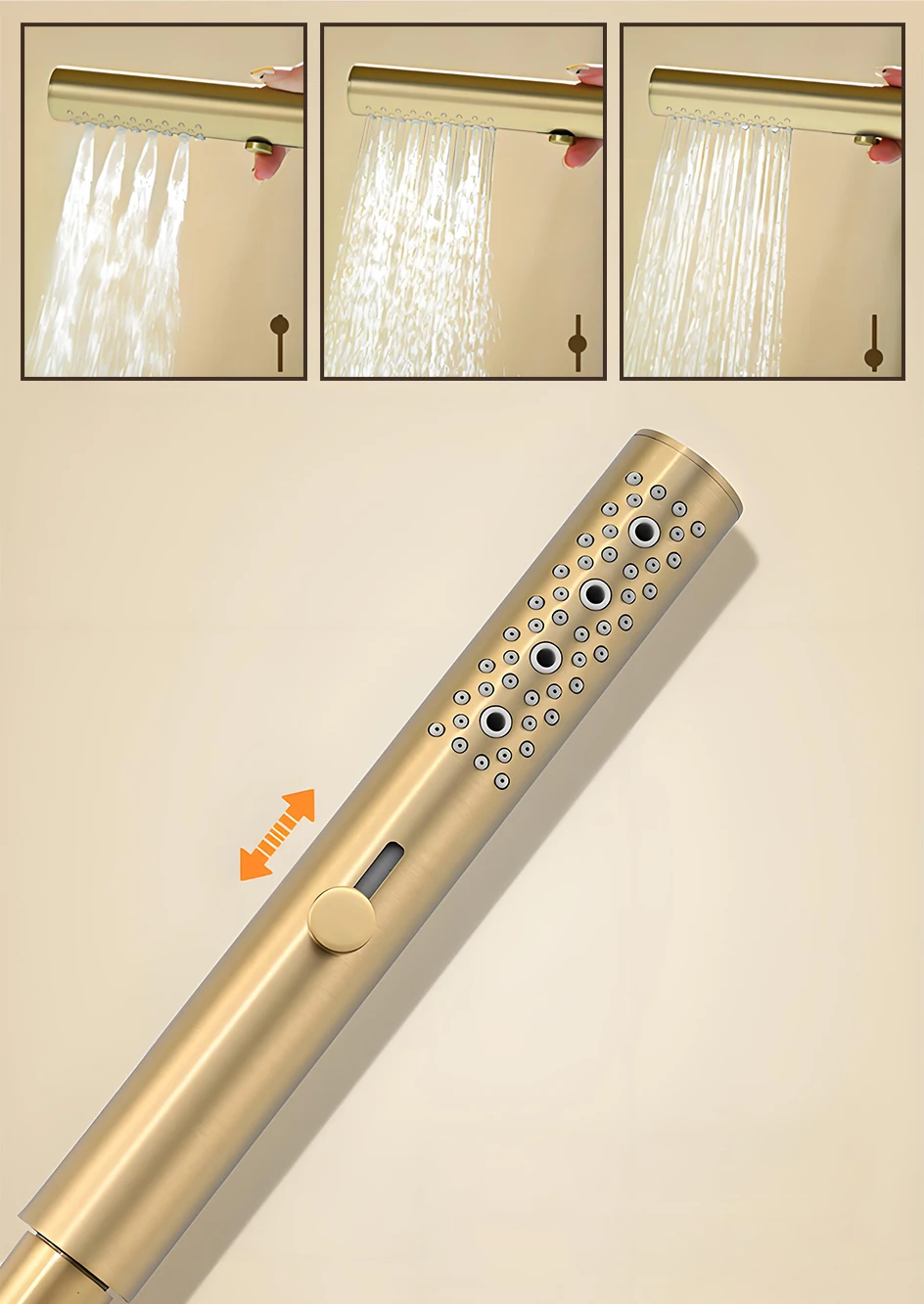 【Double contrôle à un bouton – Une expérience de douche intelligente】 La conception innovante de la cartouche de commutation à double fonction permet une commutation instantanée entre un débit large de style cascade et un débit concentré de style massage en appuyant simplement sur un bouton sur le dessus.Il n’est pas nécessaire de régler à plusieurs reprises le bouton, ce qui le rend particulièrement adapté aux scènes impliquant le remplissage de baignoires et le rinçage du corps, améliorant ainsi la douceur de fonctionnement de plus de 60 %, équilibrant l’efficacité avec un sens de rituel.