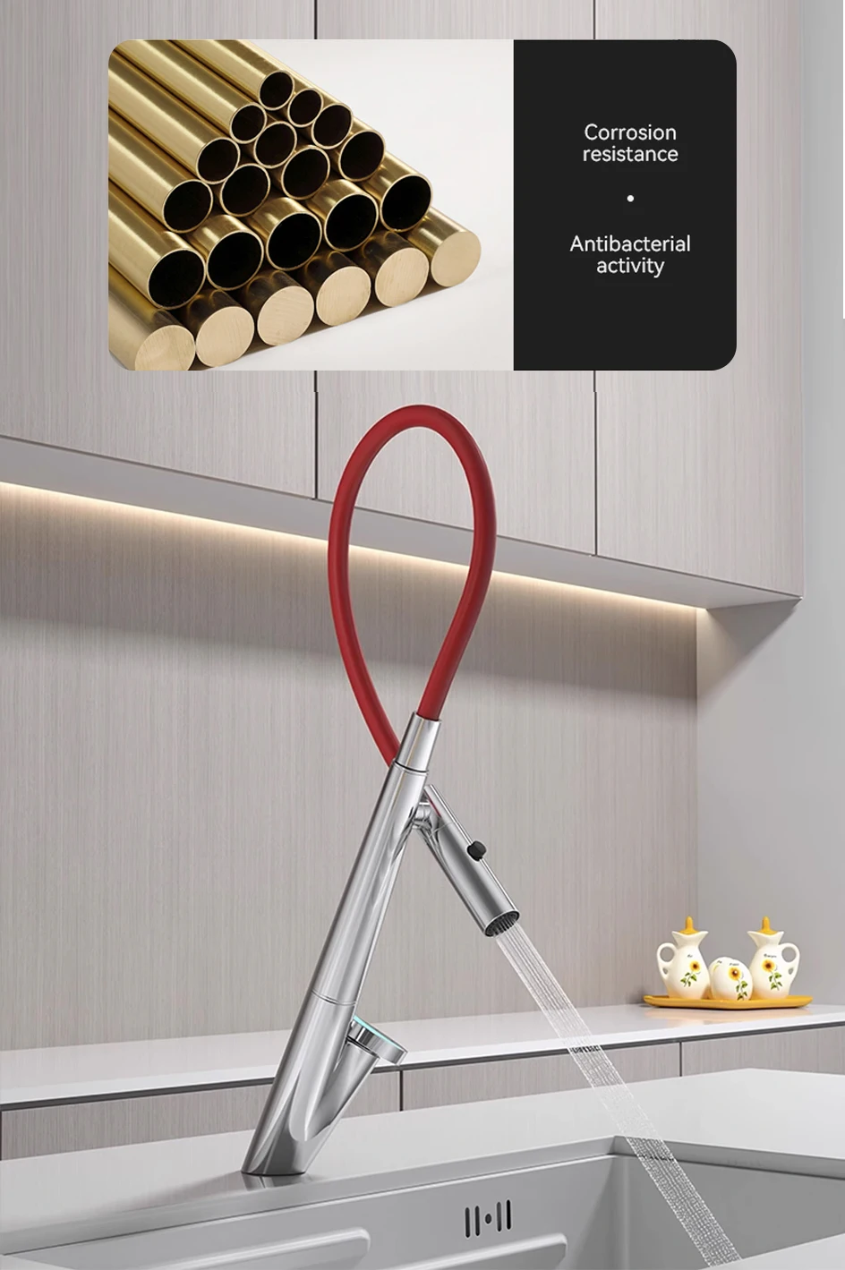 【Matériau en laiton】 Fabriqué en corps en laiton de haute pureté, il a une excellente durabilité et résistance à la corrosion, n’est pas facile à rouiller après une utilisation à long terme et possède des propriétés antibactériennes naturelles, qui conviennent à une utilisation d’eau à haute fréquence dans la cuisine.