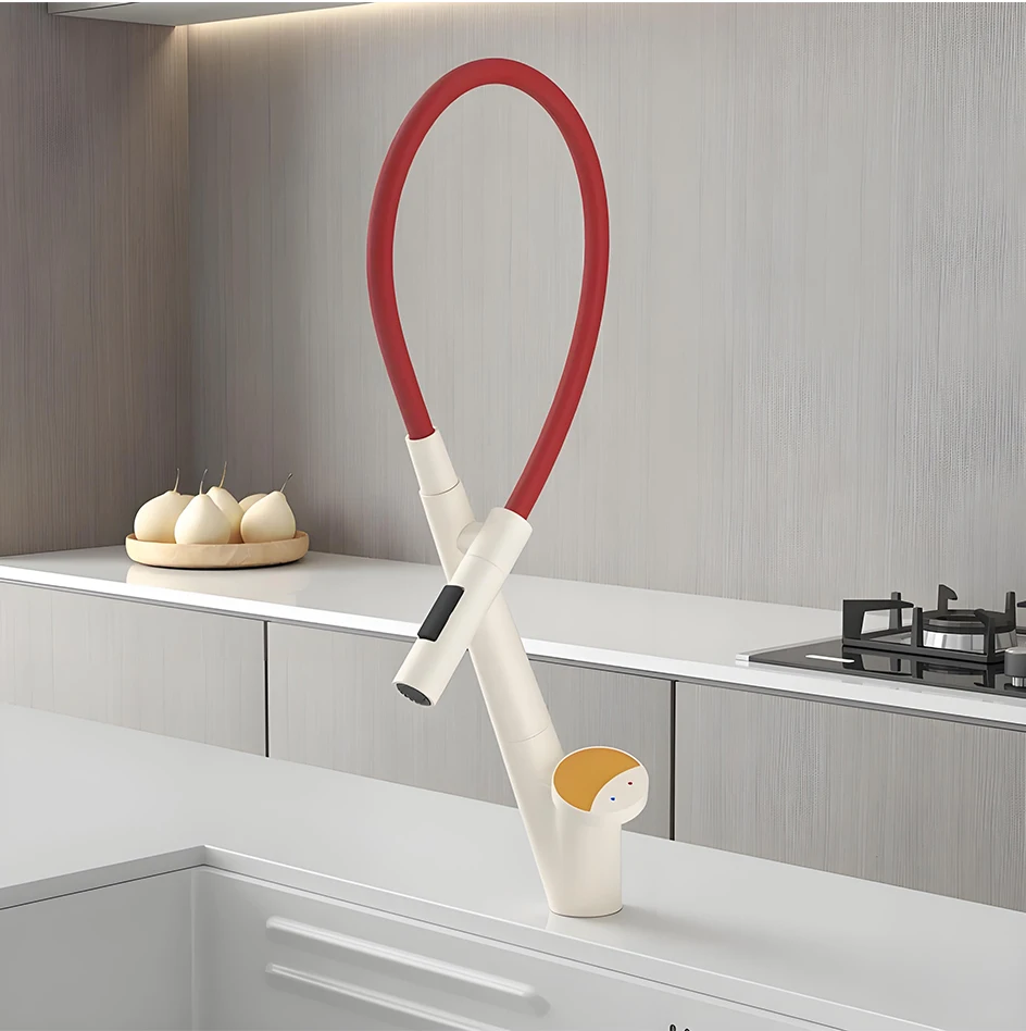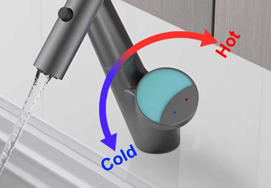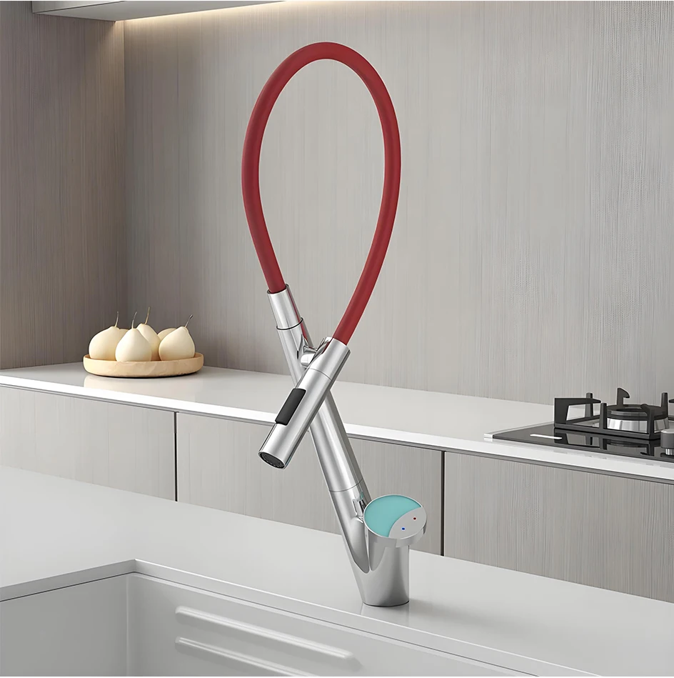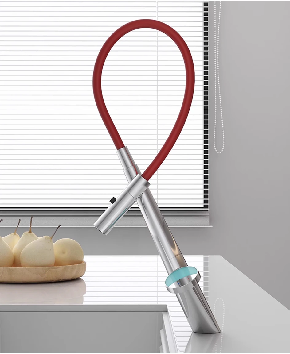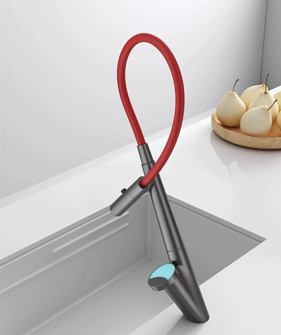 Le corps du tuyau peut pivoter librement à 360 degrés, combiné à la fonction d’extraction, pour répondre aux besoins d’admission d’eau dans plusieurs directions, libérant ainsi de l’espace dans l’évier.