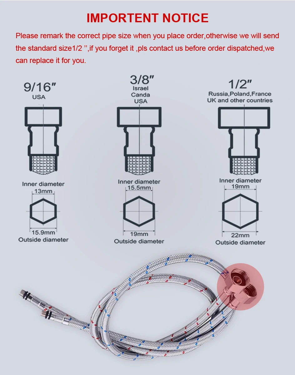 - Package: Faucet + hot cold pipes + Accessory