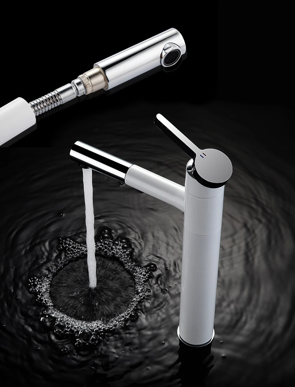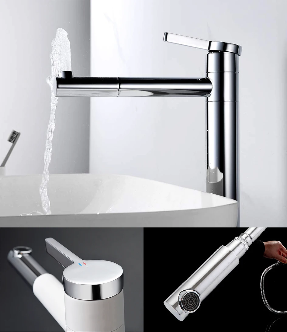 【Utilisations pratiques multiples】 ce robinet peut pivoter de haut en bas et de gauche à droite, et il peut également être tiré. Un robinet peut vous rencontrer pour vous laver les mains, vous gargariser, vous laver les cheveux, etc.en un seul endroit.