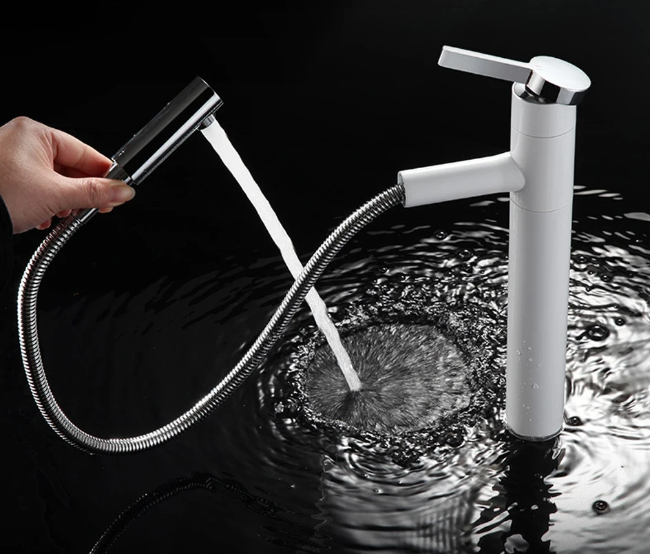 【Uses pratiques multiples】 ce robinet peut tourner de haut en bas et à gauche et à droite et peut également être tiré, un robinet peut vous rencontrer pour laver les mains, les gargarettes, laver les cheveux, etc.en un endroit.