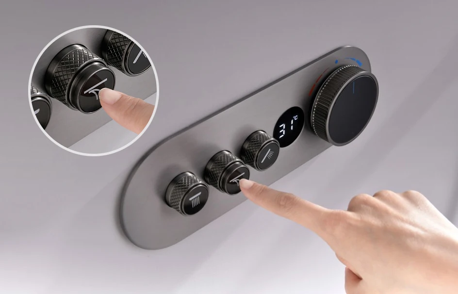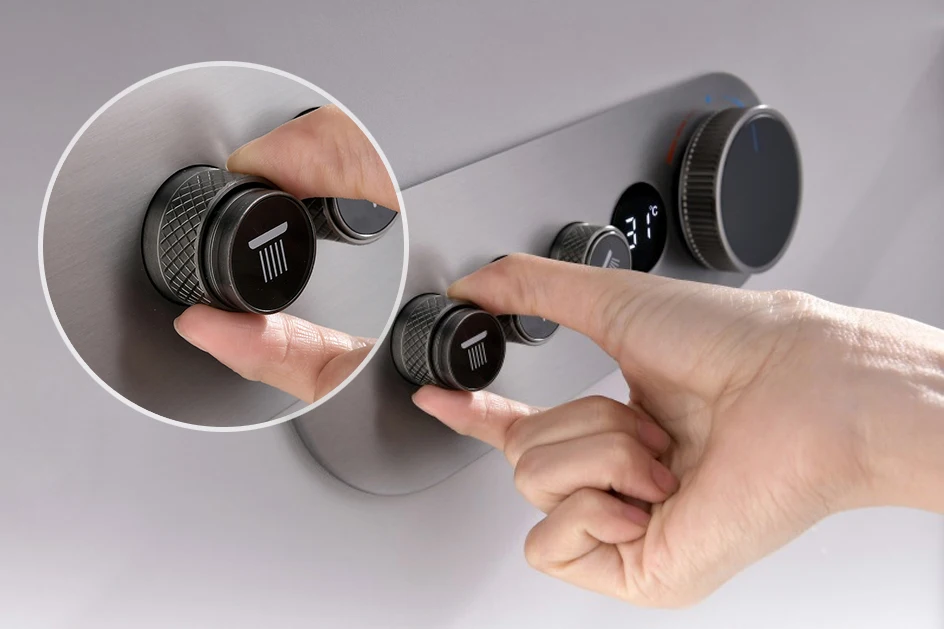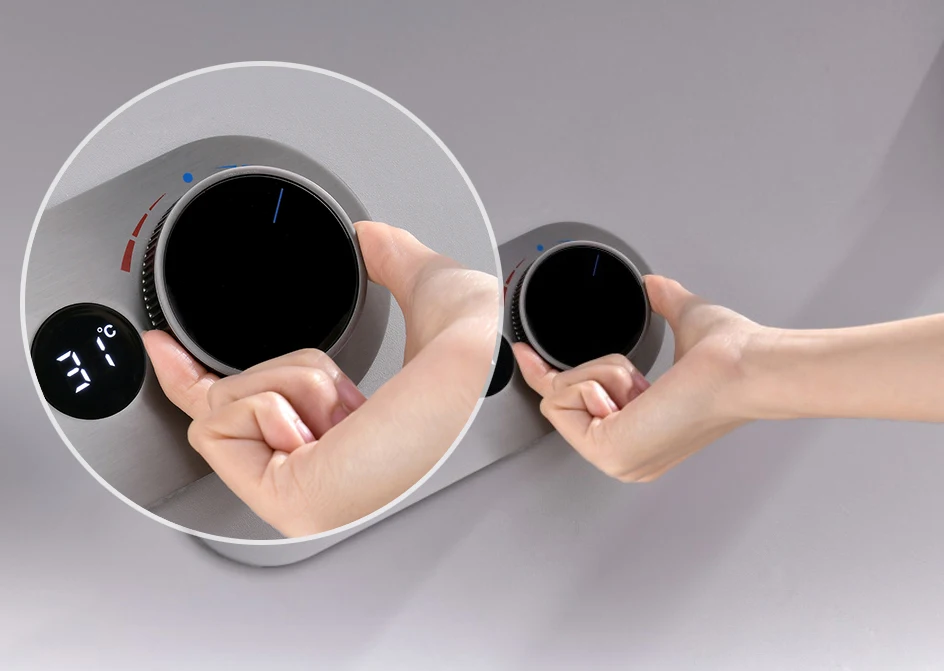 Le bouton ajuste la température de l’eau, 31 °C par défaut, et froide à chaude, vous contrôlez. Composez facilement la température qui vous convient et profitez de la température avec laquelle vous êtes à l’aise.