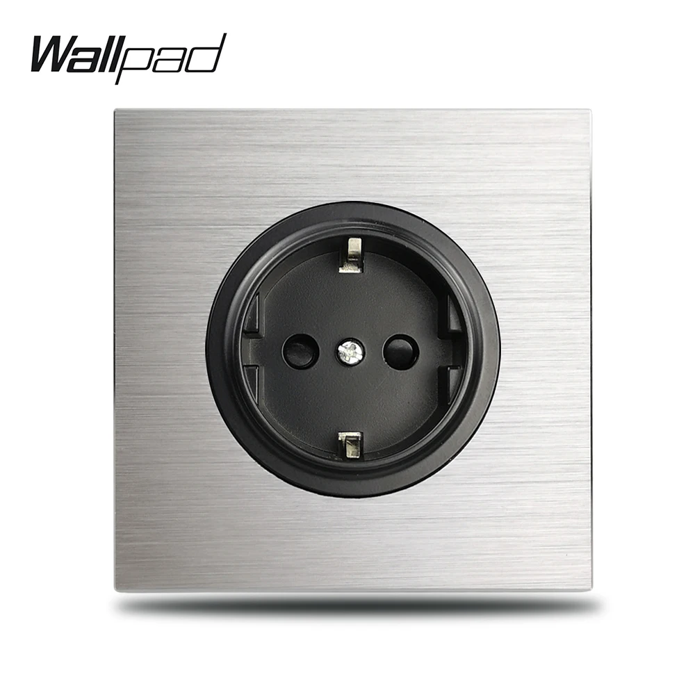 Wallpad série L6 simple 16A EU prise électrique murale plaque en aluminium argenté 1 prise de courant panneau en métal brossé