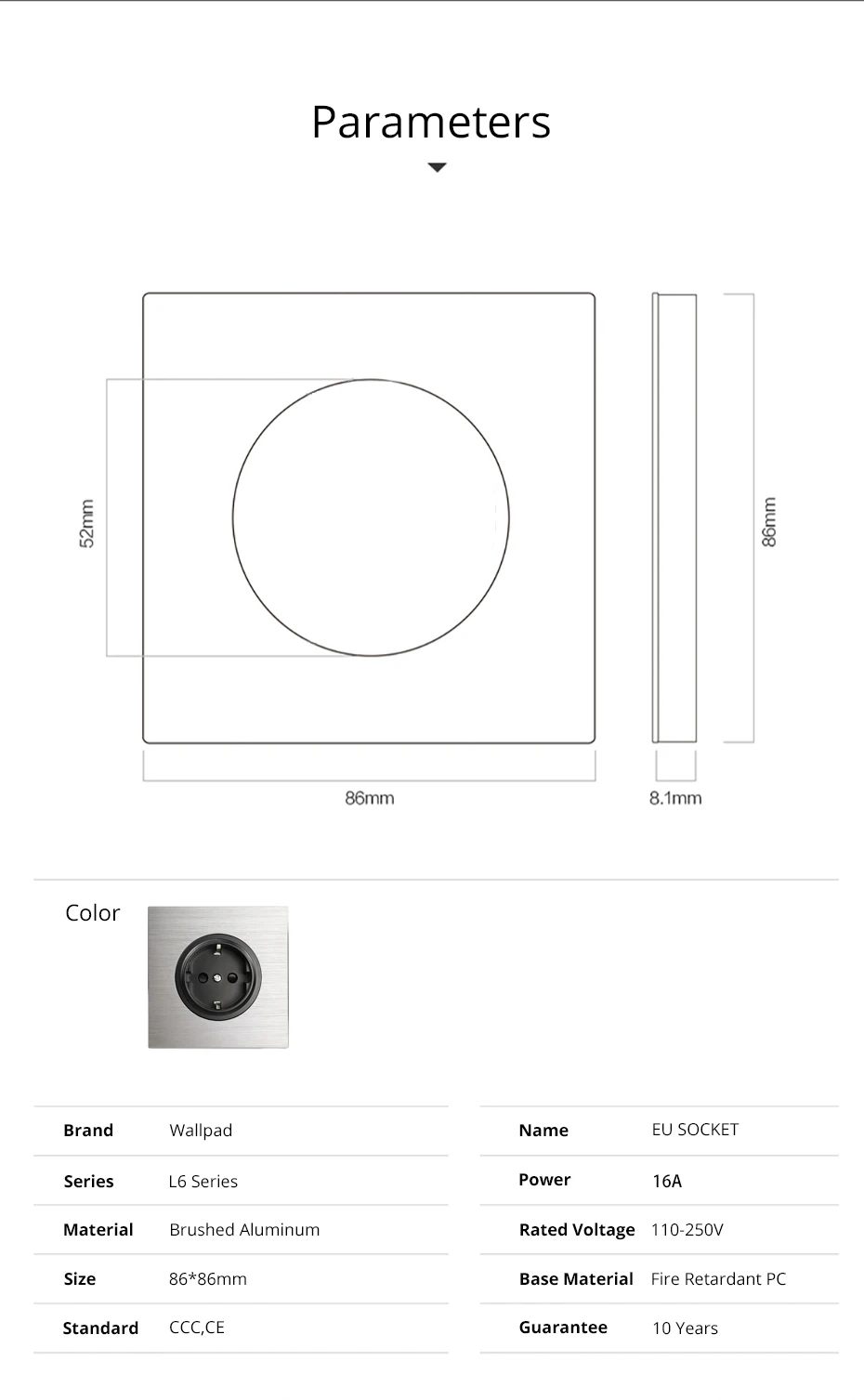 - Plate Material: Brushed Aluminum