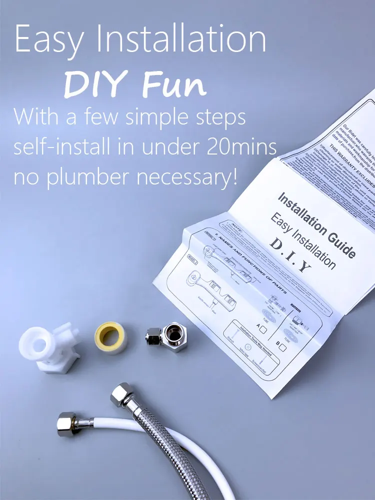 Tous les raccords sont dans la boîte et vous pouvez l’installation en 20 minutes.Vous pouvez avoir une installation de bricolage intéressante avec votre famille.Pas de plombier nécessaire!